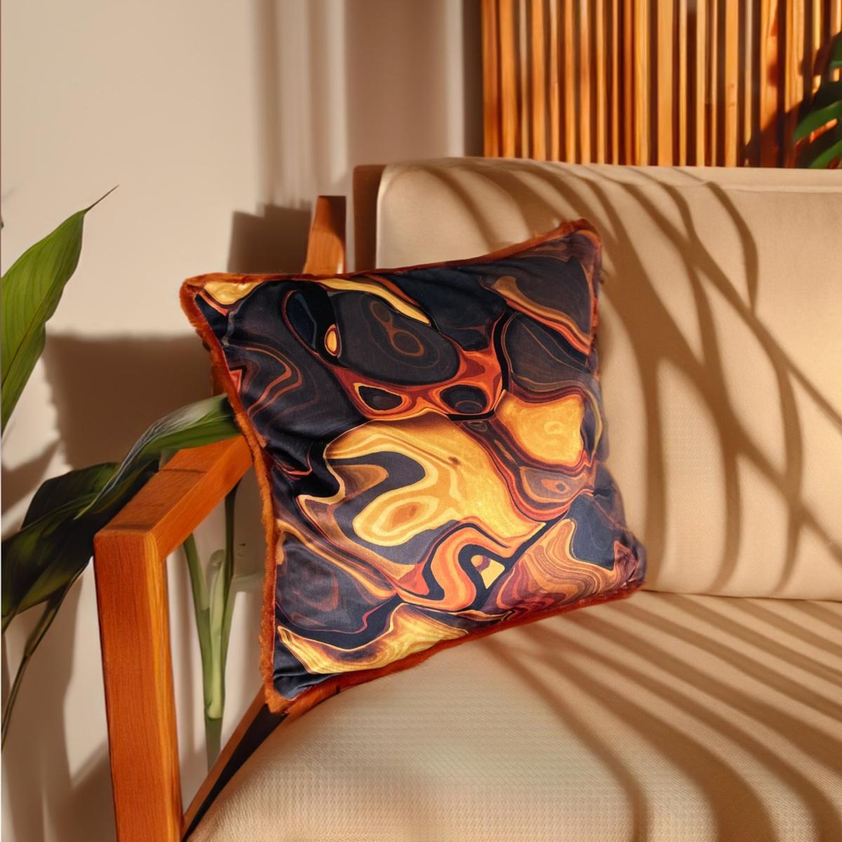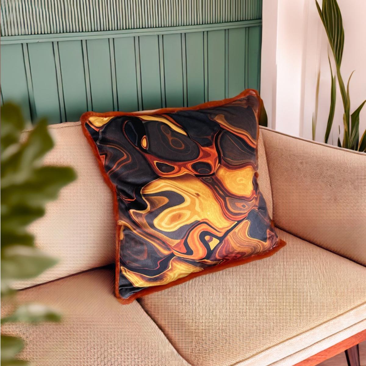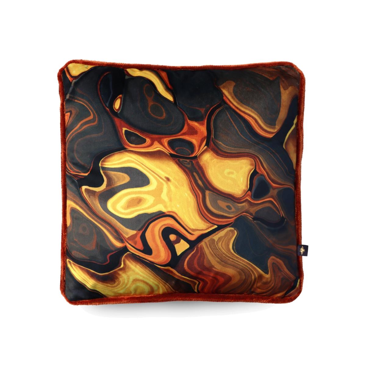 This pattern captures the mesmerising depth and powerful beauty found within a tiger's gaze. Liquid gold and amber tones flow through the design like lava echoing the qualities of the precious stone it's named after. Designed to draw the eye and captivate the imagination and invite confidence and strength into your life in abundance. Part of the Le Tigre Collection. Each piece, whether it be cushion, wallpaper, or fabric, is designed to transport you to the heart of the wilderness, where the spirit of the tiger reigns supreme as an empowered icon. Adorn your home with the essence of the jungle, and feel the untamed elegance of Le Tigre envelop your hidden wild side.