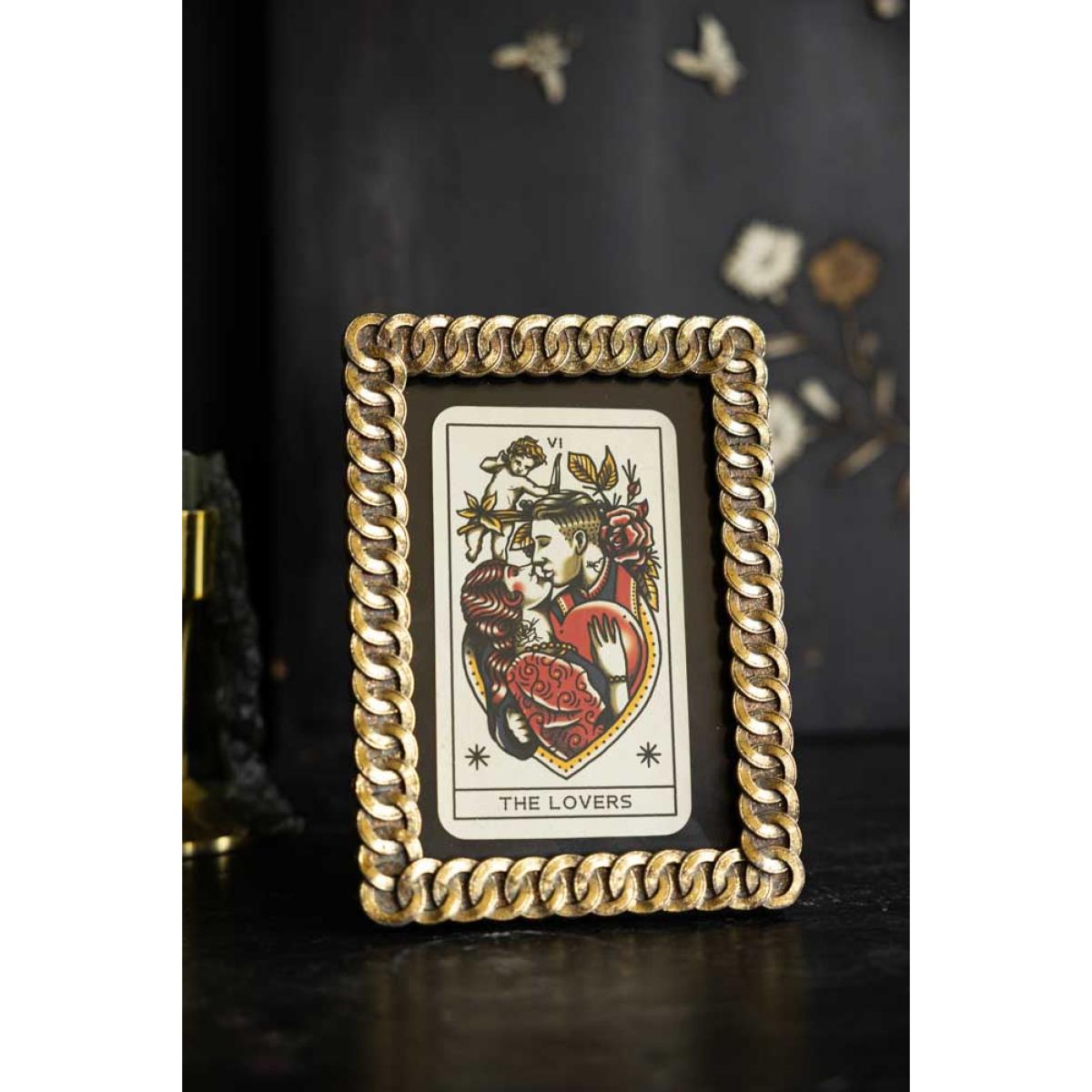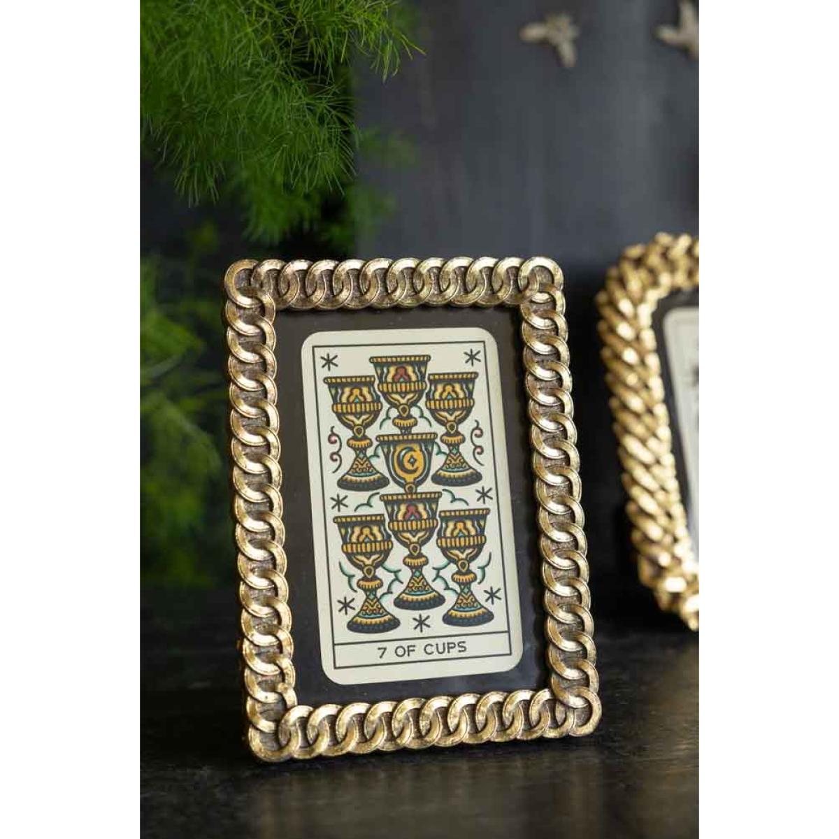 I love this gold chain rectangle frame for its versatile and timeless appeal. Its bold, metallic finish makes it an excellent statement piece, especially in modern or eclectic interiors. It works well displayed on a mantle, bookshelf, or gallery wall, adding a touch of glamour without overpowering the setting. When styling, consider pairing it with neutral backgrounds to let the frame stand out, or mix it with other metallic accents for a cohesive look. Practical tip: it’s ideal for showcasing smaller artworks or photographs, making it a smart addition for personalised styling in living rooms, bedrooms, or even hallways.