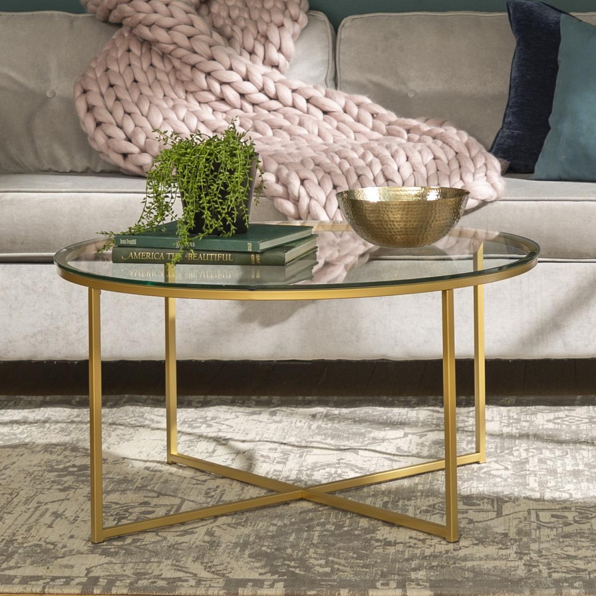 I love this gold coffee table with glass top for its sleek, contemporary look that easily elevates a variety of interiors. It works particularly well in modern or minimalist spaces, adding a touch of glamour without overpowering the room. The glass top keeps it feeling light and open, perfect for smaller living areas. For styling, consider pairing it with neutral sofas to let the gold frame stand out, or add colourful accessories like vases or books to create visual interest. Practical tips include keeping the surface clutter-free to highlight its elegant design and using it as a focal point around which to build your overall room aesthetic.