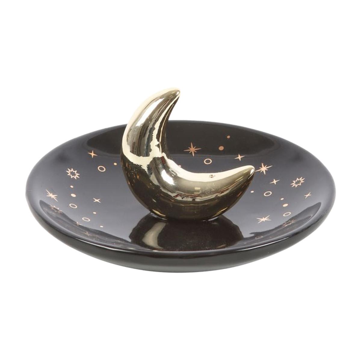 Gold Crescent Moon Incense Stick Holder - Black/Gold