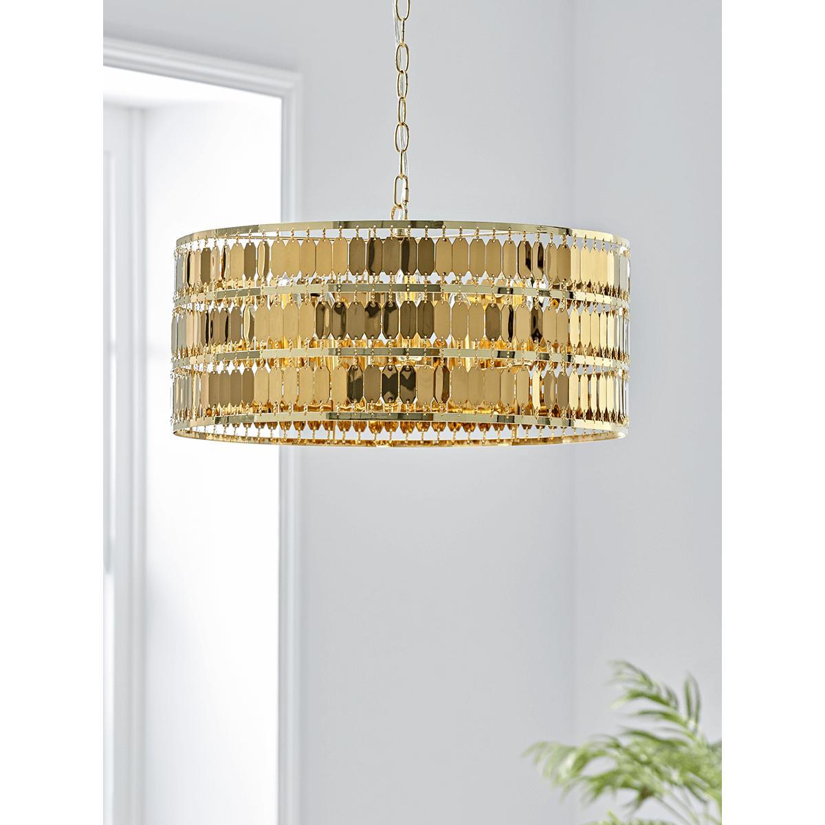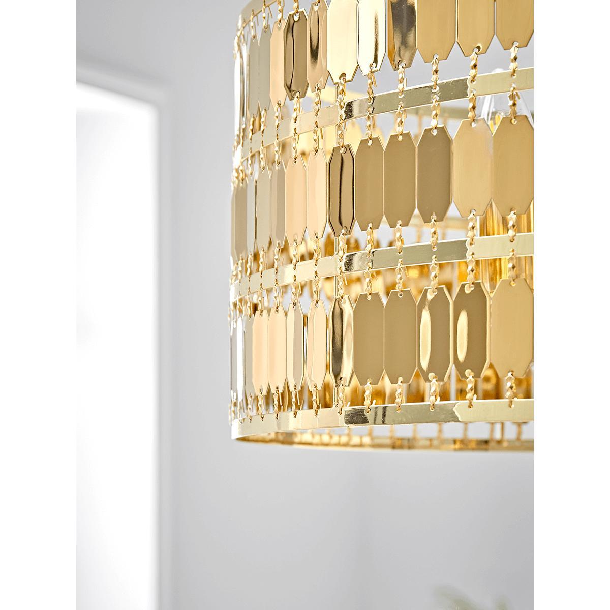 See your living space sparkle with our Gold Disc Pendant. Five evenly spaced bulbs hang within a fabulous gold circle made up of three layers of individual high-shine steel octagons to create an opulent, 1920s. Deco Luxe. Aesthetic that is sure to wow visitors and bring joy to you and your loved ones. Discover how to create the perfect lighting scheme for your home using our. Lighting Buying Guide.
