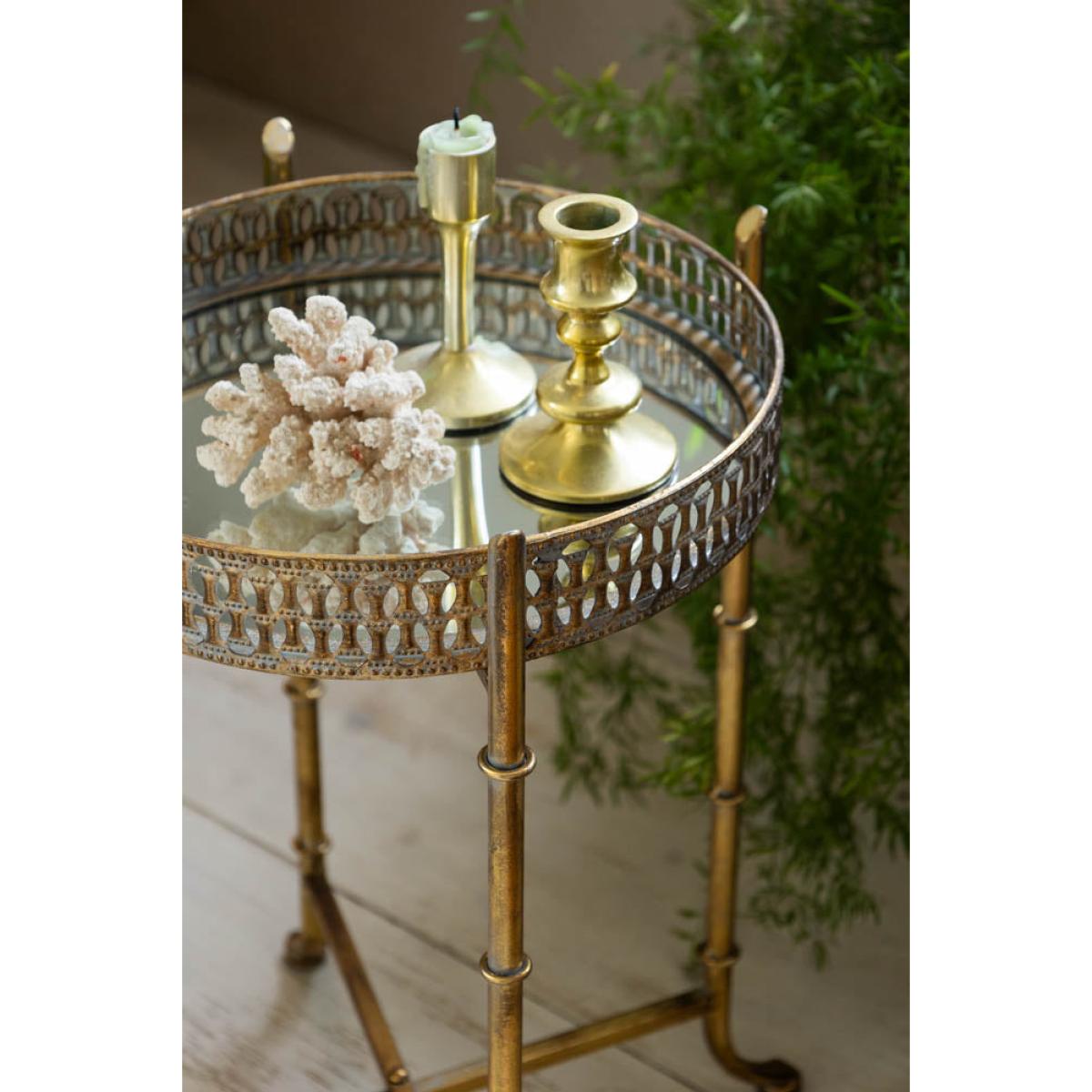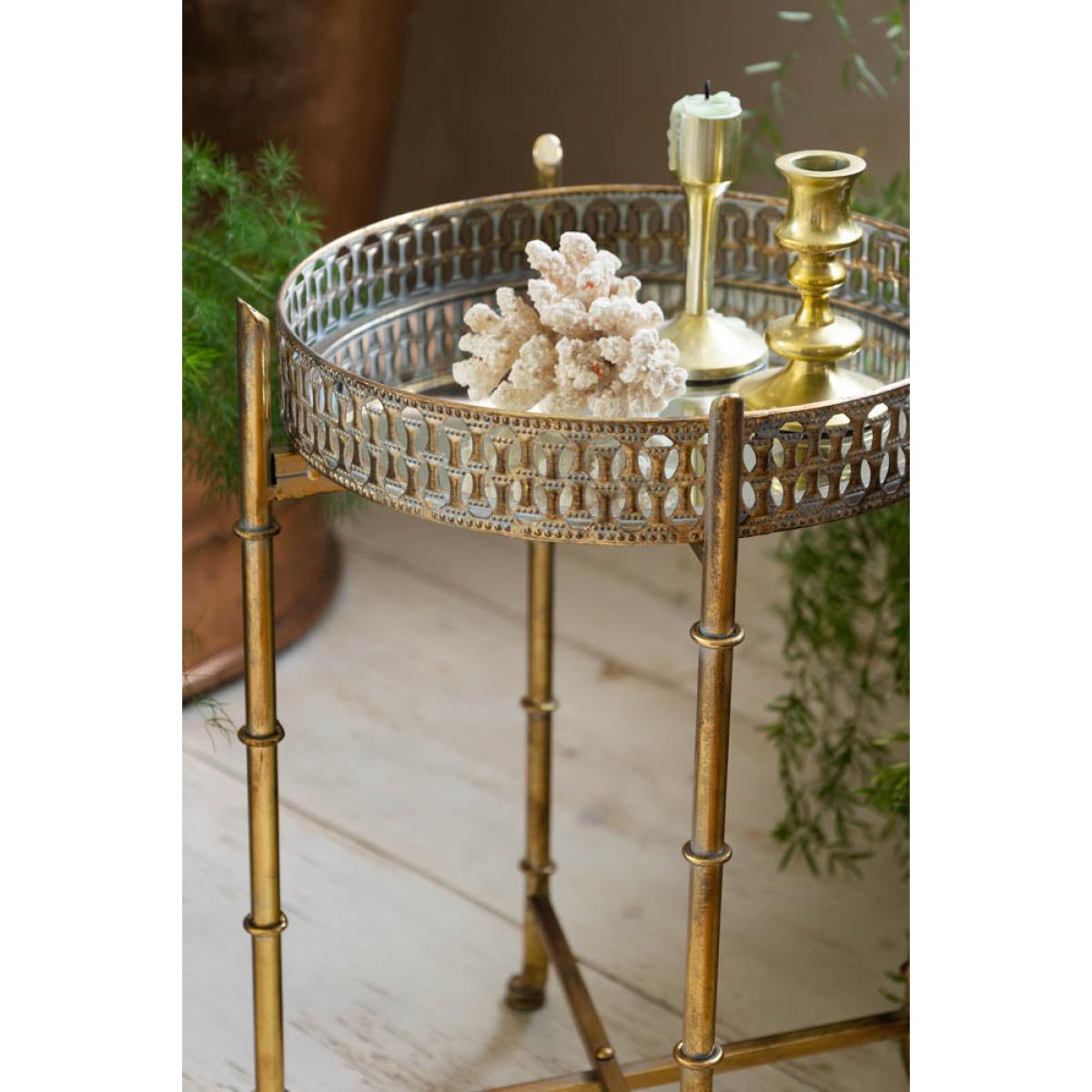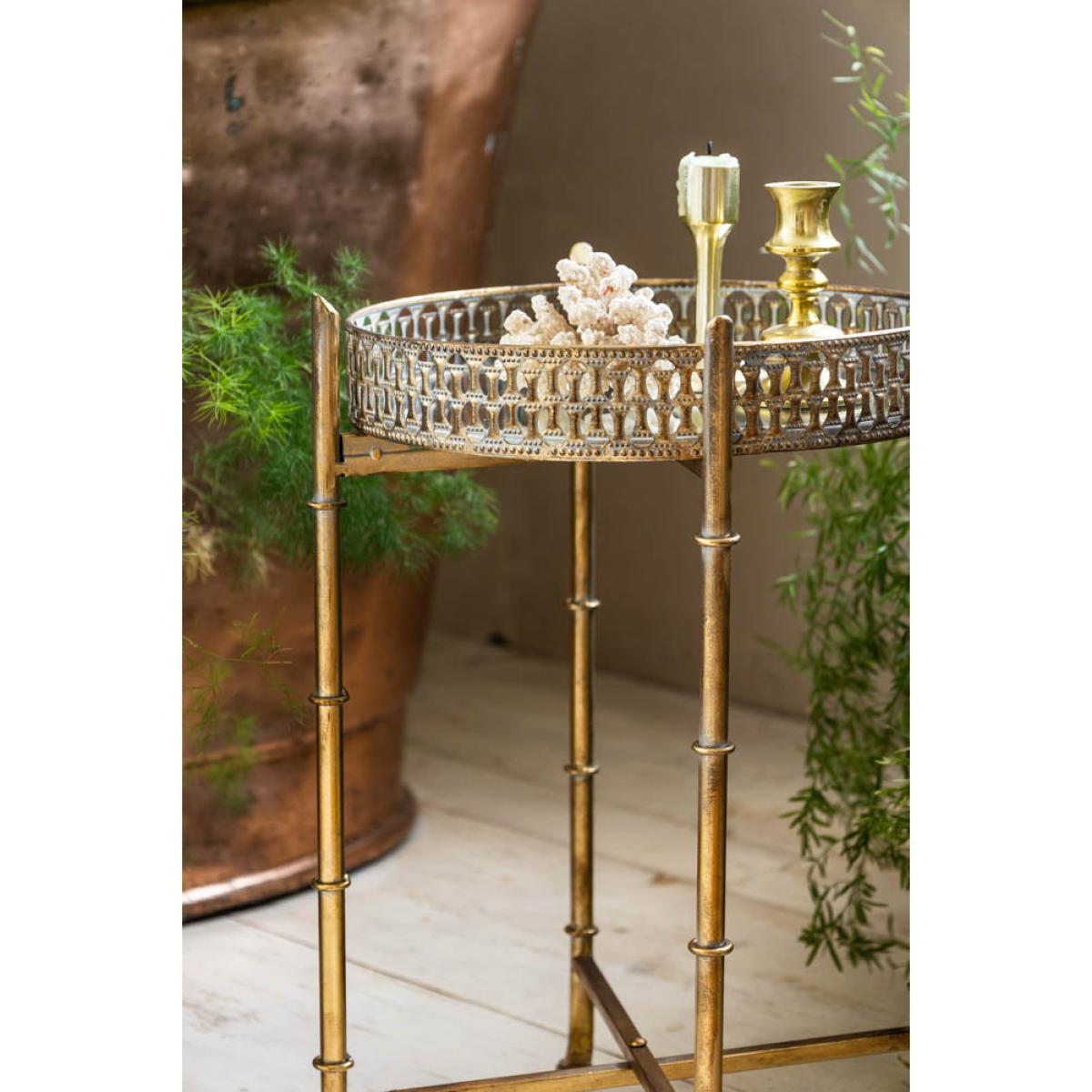 There’s a quirkiness to this piece that’s utterly charming, combining as it does a vintage-style bamboo-esque gold frame with a glass top and intricately detailed gold rim. Perfect for when you’re hosting, this is just right for drinks and snacks, and when you’re not, this wouldn’t look out of place in the kitchen or dining room as a drinks trolley (although please note this isn’t on wheels). Alternatively, it’s a bold enough design to take a statement vase and generous bunch of seasonal blooms, a voluminous plant or an assortment of candles – mix pillar styles with votive and tealights for a glorious light show. After all, who can fail to be charmed by flickering candlelight bouncing off the mirrored tabletop? Just stunning. - Gold Distressed Mirrored Side Table - Material: Metal and glass - Measures: H50cm x Dia. 33.5cm