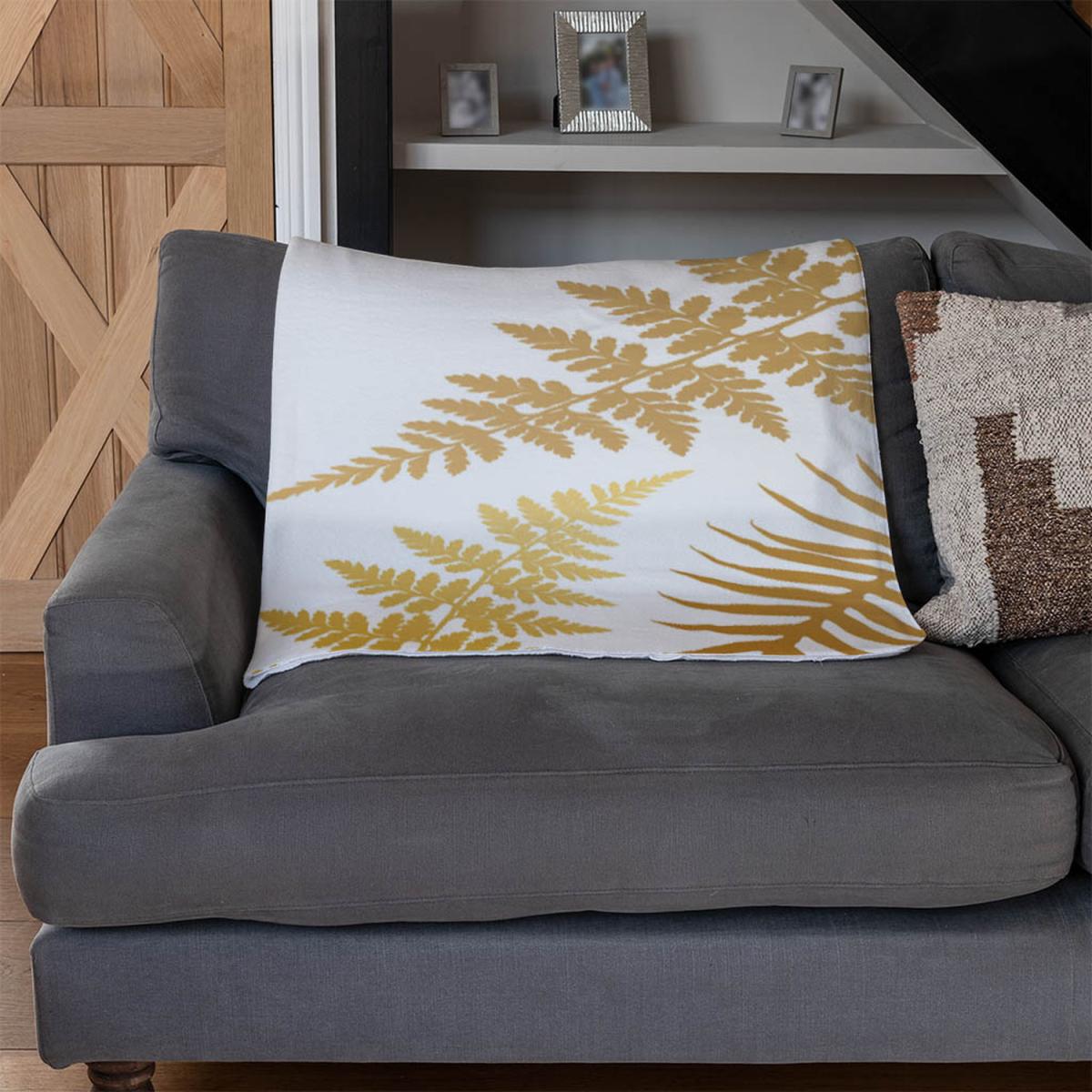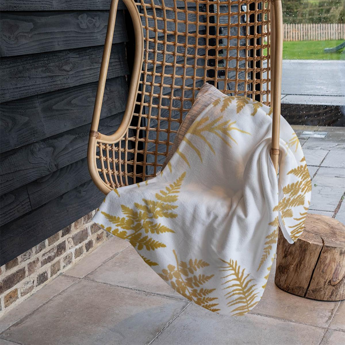 I love this throw because of its rich gold hue and subtle fern pattern, which adds both warmth and a touch of nature-inspired elegance to any space. It works particularly well in both modern and traditional interiors - think layered over a neutral sofa to bring a pop of colour or draped across a bed for a luxe, inviting feel. Practical styling tip: fold it neatly at the foot of the bed or casually drape it over a sofa arm to create a relaxed yet curated look. Its soft, warm texture also makes it perfect for cosy nights in, blending visual interest with comfort effortlessly.