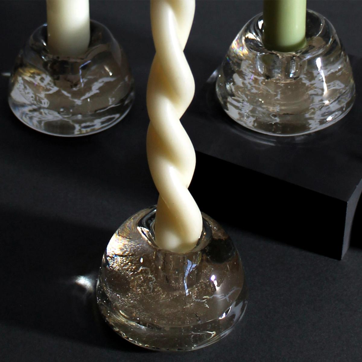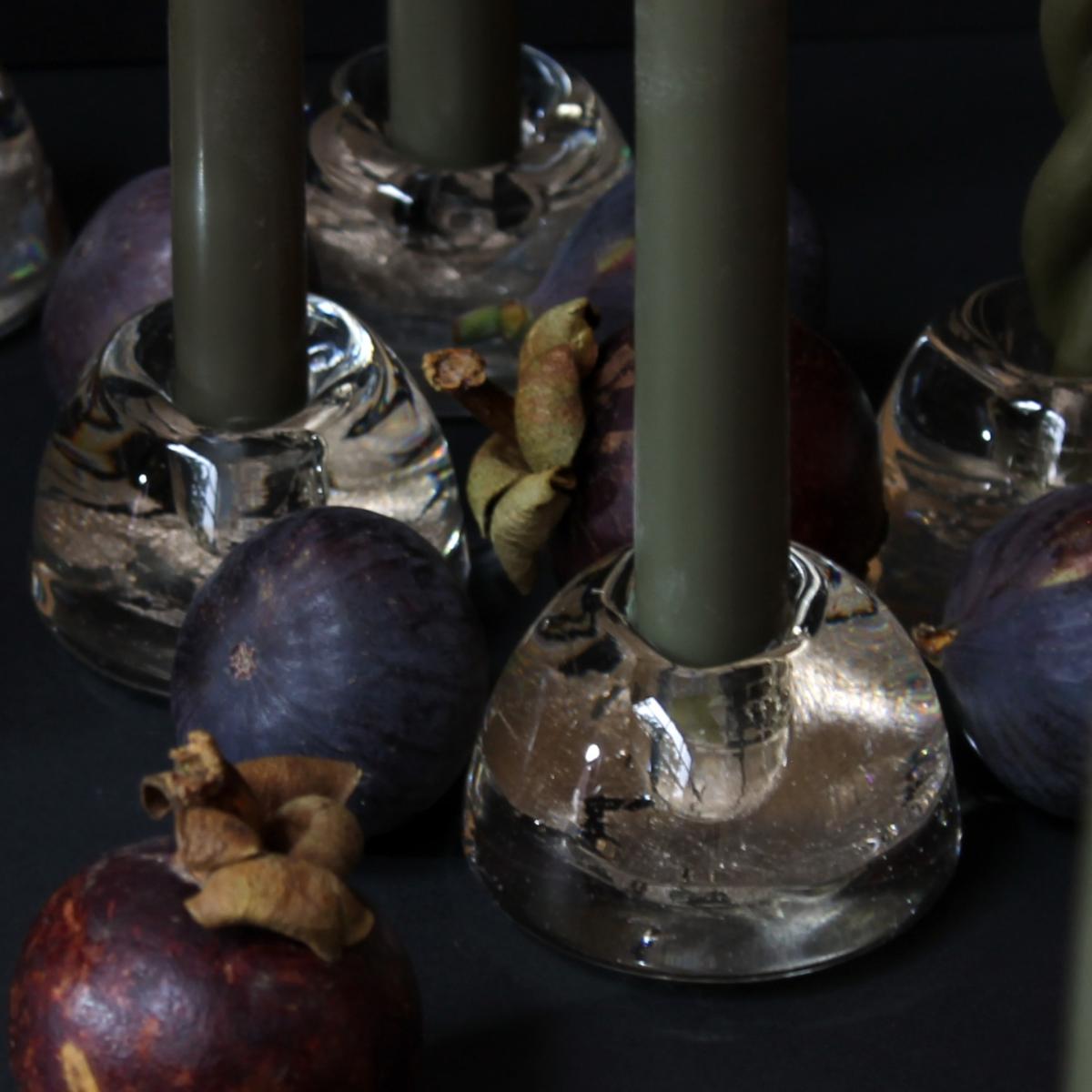 Our hot-sculpted, handmade FLECK candlestick holders create the perfect atmosphere of warmth and sophistication. An elegant party accent, our hand-blown glass candlestick holders are ideal for long flickering tapers - elevating any tablescape, mantelpiece or dresser by adding a touch of seduction, intrigue and flair.