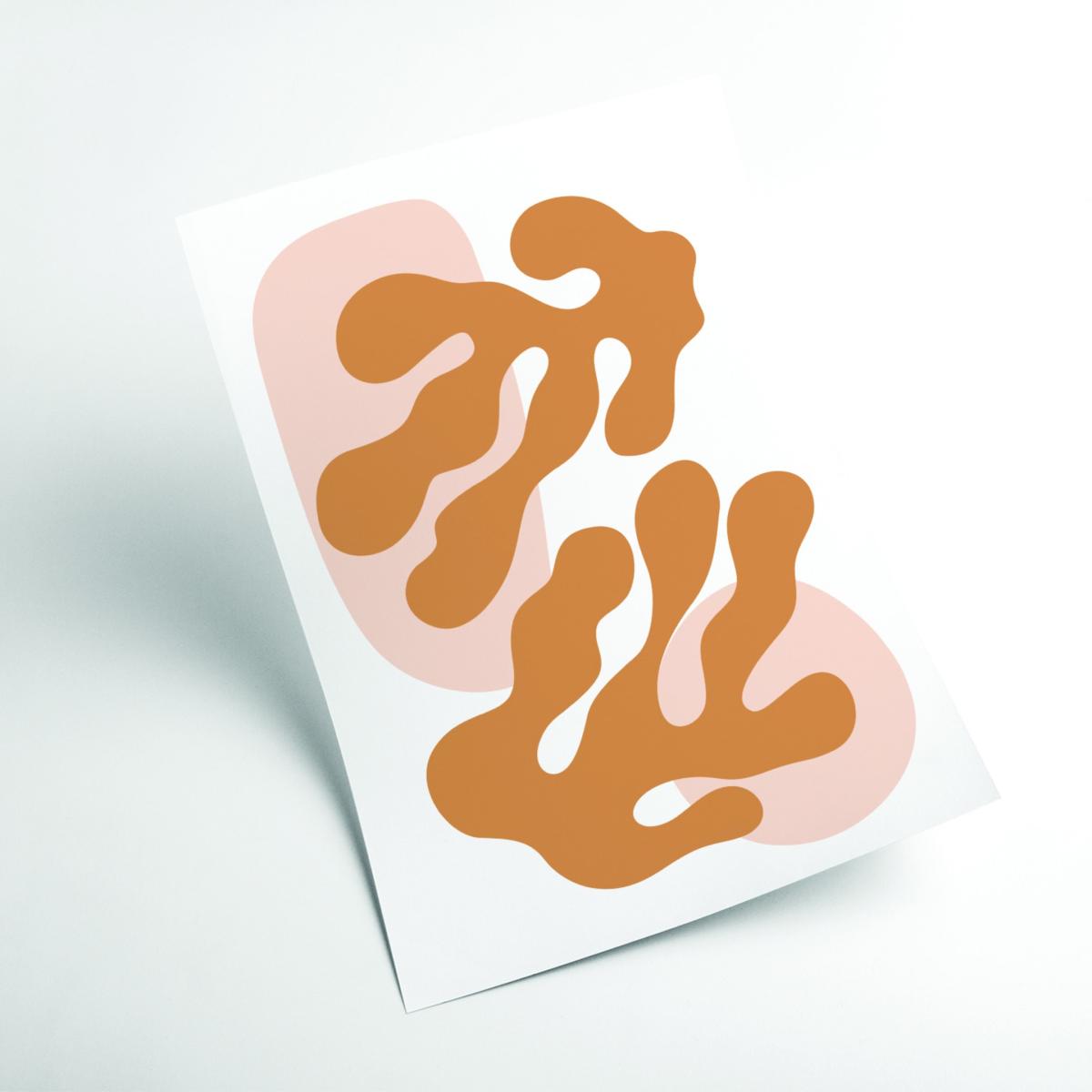 I love this print for its bold yet understated aesthetic, making it versatile for both modern and more eclectic interiors. The small size of this artwork makes it ideal for creating a curated gallery wall or adding a pop of colour and visual interest to smaller spaces like a kitchen nook or a study. Its abstract shapes and warm tones promote a contemporary feel, and it pairs well with neutral palettes or muted furnishings. Practical styling tips include placing it in a clean-lined frame to enhance its modern appeal or grouping it with other prints for an artful arrangement. This piece works particularly well in spaces craving a touch of artful complexity without overwhelming the room’s overall serenity.