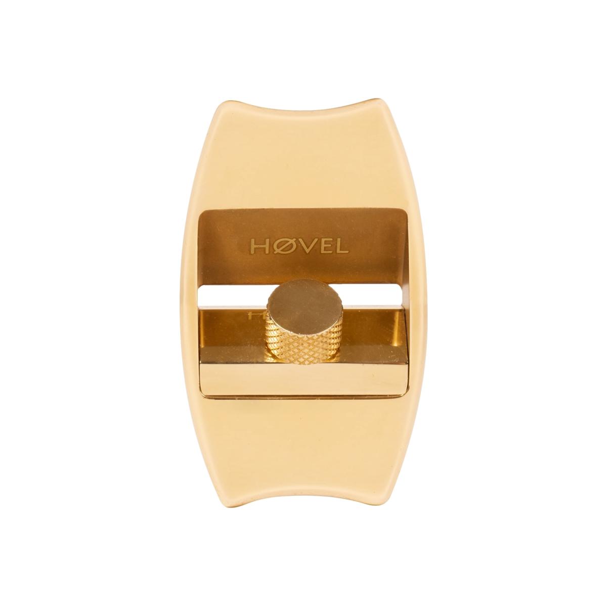 Høvel is an entirely reimagined pencil sharpener. Høvel pencil plane enables you to whittle your pencil perfectly to any desired point. Its unique mechanism also helps to not break the lead of your pencil, unlike the commonly used sharpener, which twists and snaps graphite. Due to its solid brass body, its weight is a joy, and it gains beauty and character with age. Please note the base is sold separately. Brass Hovel 100% Stainless steel blades 100% Brass is a reactive metal that will naturally tarnish in different conditions and especially when handled. Oils and moisture from hands will affect the brass colour and will tarnish it helping to build a patina. This can be easily cleaned off if you prefer it looking perfectly clean and polished. The first step is to take the Høvel apart, separating the screw and clamp from the main body. Use some Brasso wadding (or other brass cleaning agent), this can be purchased at most hardware stores, supermarkets, and online. Take a small piece of the webbing and in small circular motions wiping the tarnished areas and sections of graphite. The wadding should start to turn a deep black showing that it is removing the oils and dirt. Once you have cleaned the brass take a soft cloth or tissue and slightly moisten it with some water and washing up liquid/soap. Then wipe off the residue from the Brasso in a similar motion and care to the Brasso wadding. Then run the parts under some warm water tap and clean off all the cleaning residue. Finally taking another soft cloth/tissue and dry any moisture, I usually use a yellow glass polishing cloth because it will buff up the Høvel to make it very shiny.