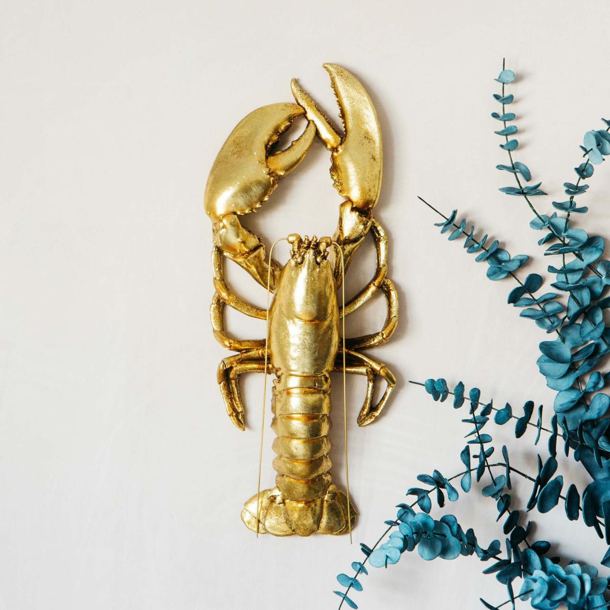 A quirky, lightweight lobster decoration with an opulent gold finish. Perfect for hanging on your wall, placing on your table or using as a handy paperweight.