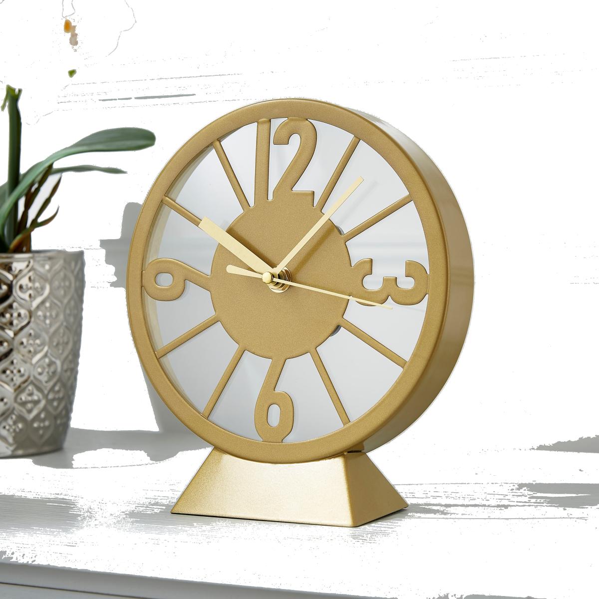 I love this gold clock for its clean, contemporary design and warm metallic finish, which adds a sophisticated touch to any space. It works particularly well in modern and minimalist interiors, where its bold shape can serve as a statement piece, or in eclectic settings that mix textures and colours. Practical styling tips include placing it on a console table, bookshelf, or mantel to make it a central focal point. To keep the look cohesive, pair it with other gold accents or neutral tones, letting its sleek design stand out without overwhelming the space. It's a versatile piece that combines both form and function, making it a smart choice for elevating your interior.