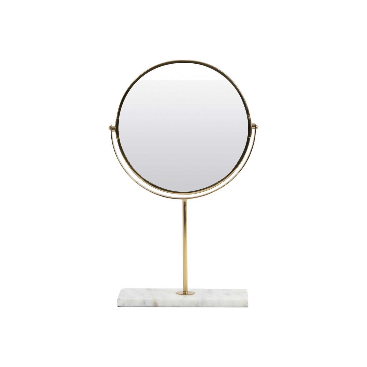 Ideal for shaving, applying makeup and more, the Gold Mirror on Marble Stand is an elegant addition to the bedroom or bathroom. Its tilting design is ideal for catching the light just where you need it, so it’s always easy to find the right angle. In a classic combination of antique gold and beautiful marble, this gorgeous vanity mirror will dress up any table or windowsill.