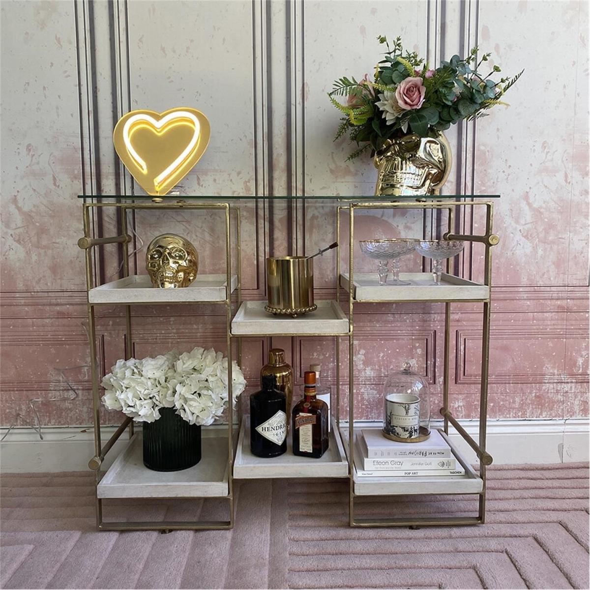 This gold mirror with the heart neon light adds a playful yet sophisticated touch to any interior, making it perfect for creating a focal point in modern or eclectic spaces. I love how it combines a reflective surface with a fun, warm glow that works well in bedrooms, living rooms, or even stylish home offices. To style it effectively, consider pairing it with minimalistic furniture to let the piece shine, or position it against a coloured or textured wall for added visual interest. Practical tips include hanging it at eye level in smaller rooms to reflect more light and open up the space, or using it as a statement piece above a console or mantel to inject personality and warmth.