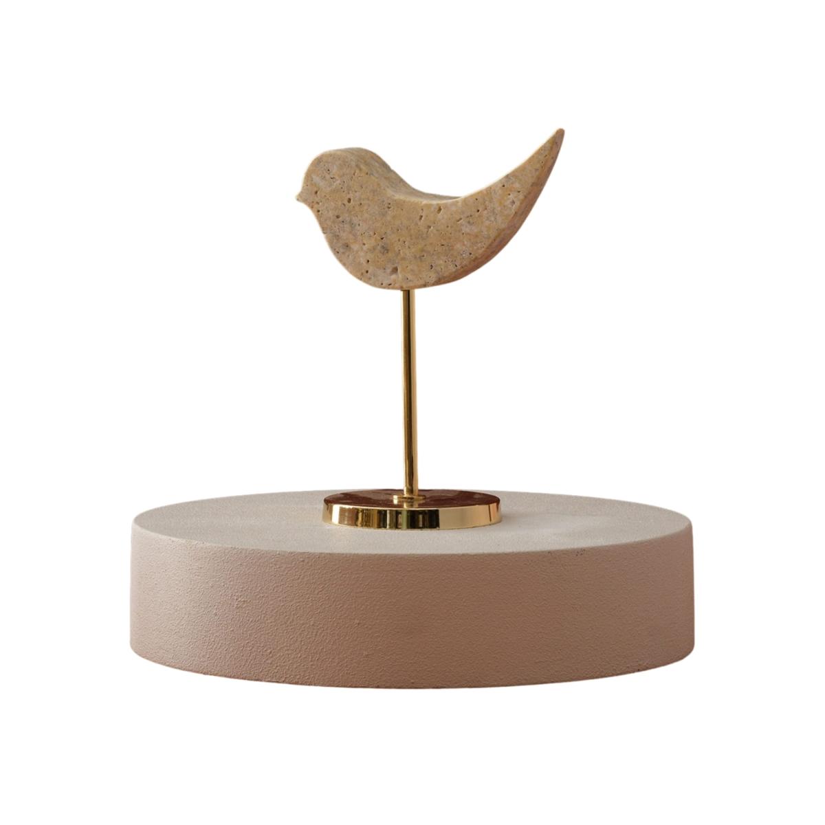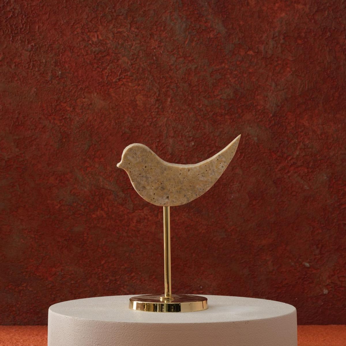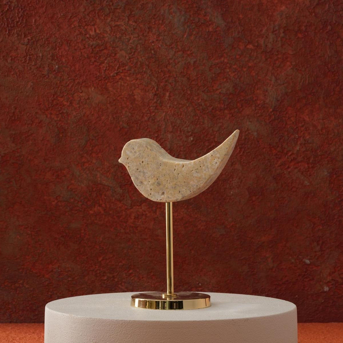 Add a touch of serenity and charm to your home with the Travertine Bird Decorative Sculpture. This delightful piece, sculpted from natural travertine stone, captures the simple elegance of a bird perched gracefully. Elevated by a polished brass stand, the combination of raw stone and metallic accents creates a harmonious blend of earthy and modern elements. This sculpture is perfect for adding a warm, welcoming touch to living rooms, entryways, or office spaces, infusing nature-inspired artistry into your décor.