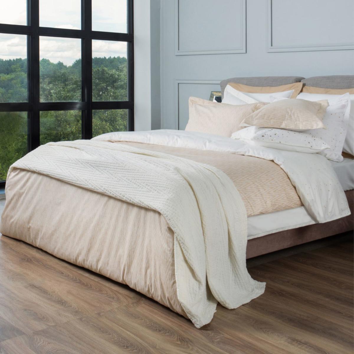 This cotton bedding set in neutral tones with a subtle twist of gold is a versatile piece that effortlessly elevates a range of interior styles. I love how its crisp white with soft gold accents adds a touch of understated luxury, perfect for both modern and classic schemes. It works beautifully in minimalist spaces when paired with textured throws or minimalist furniture, and it can also complement more plush, layered bedrooms for a cosy yet elegant feel. Practical styling tips include layering with neutral cushions and throws to enhance its understated elegance, or adding metallic accessories to highlight the gold details. It's also ideal for creating a calm, restful bedroom that balances comfort with a sophisticated aesthetic.