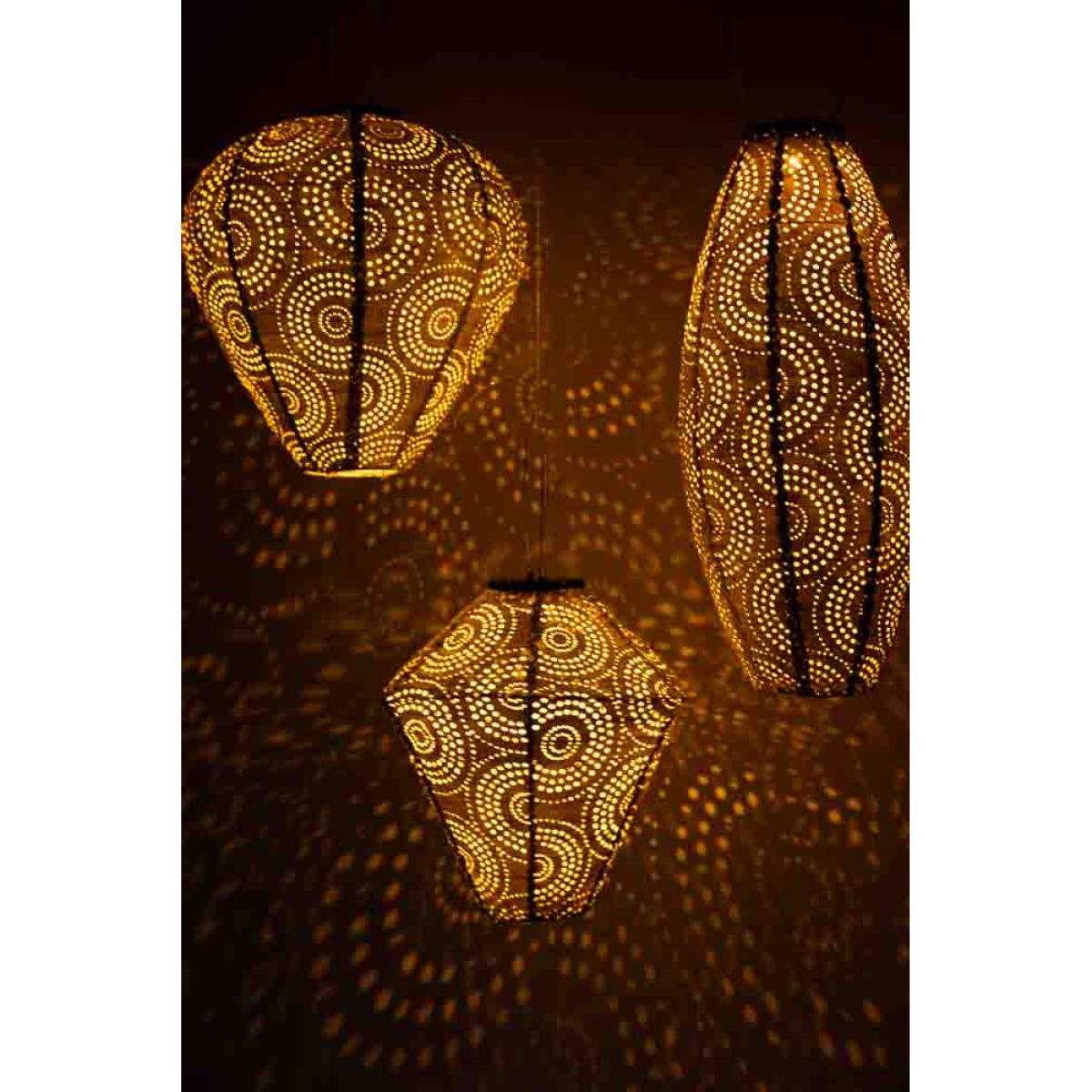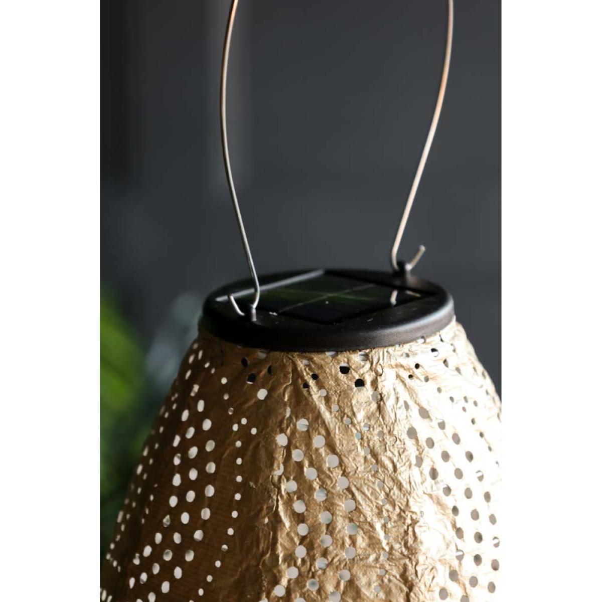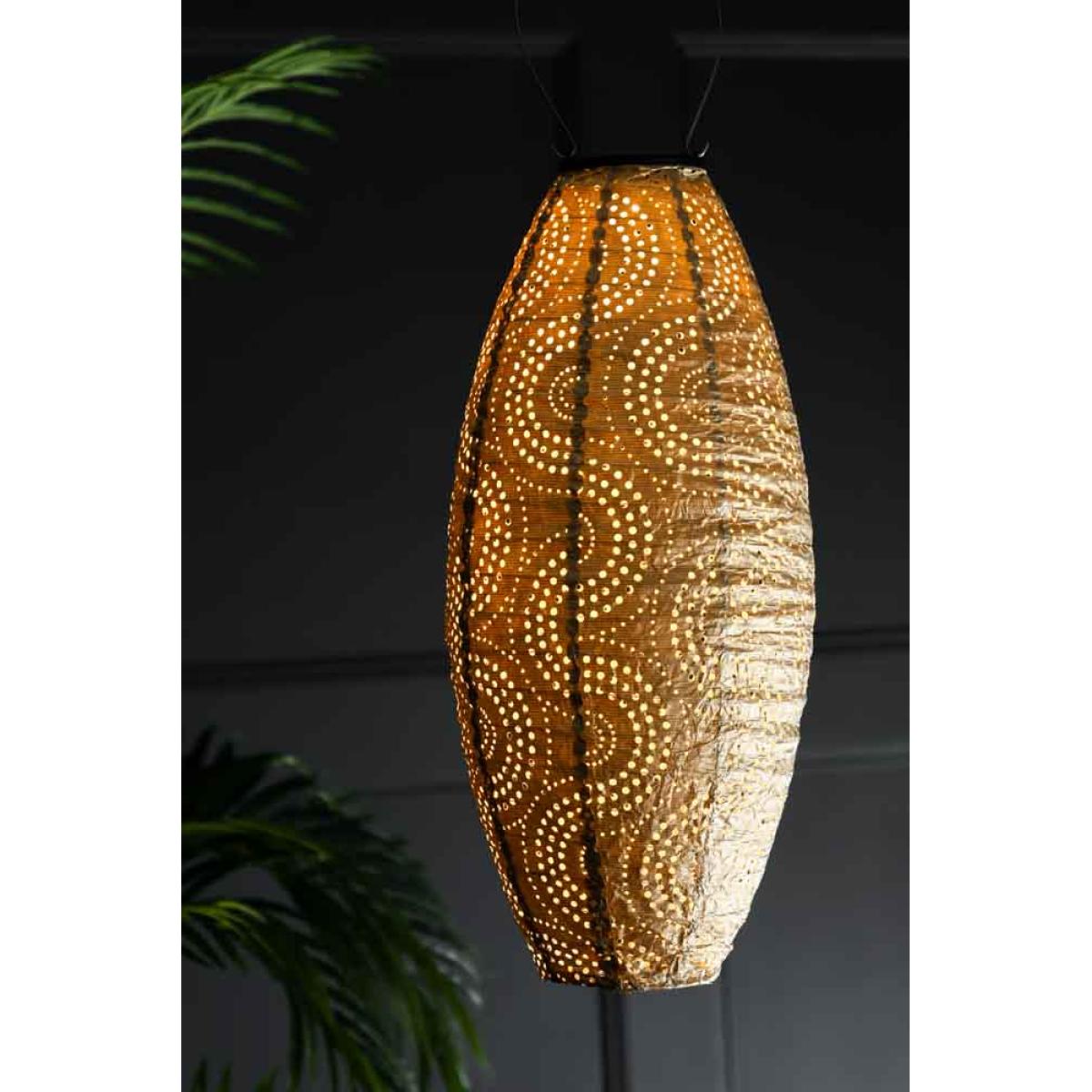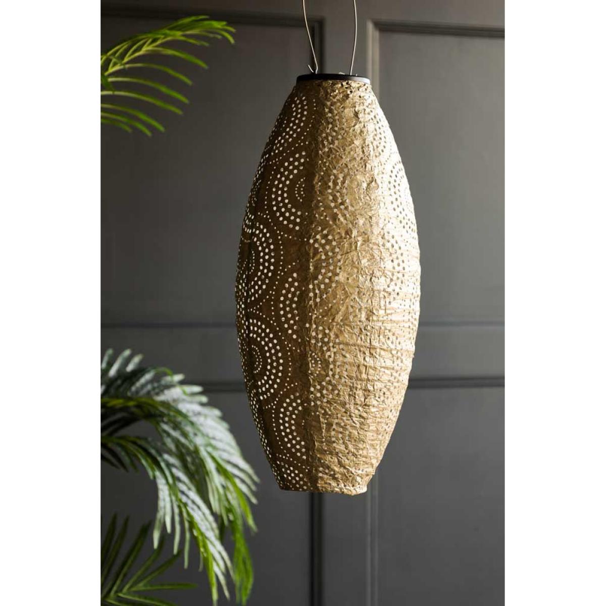 Bring beautiful reflections of light into your garden this summer with the Gold Oval Solar Garden Lantern. Practical and chic, this gold lantern is charged by the sun during the day and introduces a gorgeous warm glow to your outdoor space as night arrives. With no need for an outside plug socket, solar lights are a fabulous and eco-friendly alternative to candle lanterns and look gorgeous whether hung from the branches of a tree or introduced to the table as a centrepiece. In addition, the concentric circle detailing across the gold fabric base creates magical light patterns after dark. Perfect for making the most of any outdoor space during hot summer nights, this solar light for the garden helps achieve an al fresco living room reminiscent of a Moroccan riad or tropical beach house without stepping further than a few steps outside. Lazy girl summer never looked so good! - Gold LED solar light for the garden- Made from Tyvek, a strong, durable and weather-resistant material - Measures: 45cm x 20cm- Solar panel with rechargeable solar battery - Place outside in sunlight to charge the battery during daylight - A full charge provides approximately 7 hours of light - Please store inside during bad weather