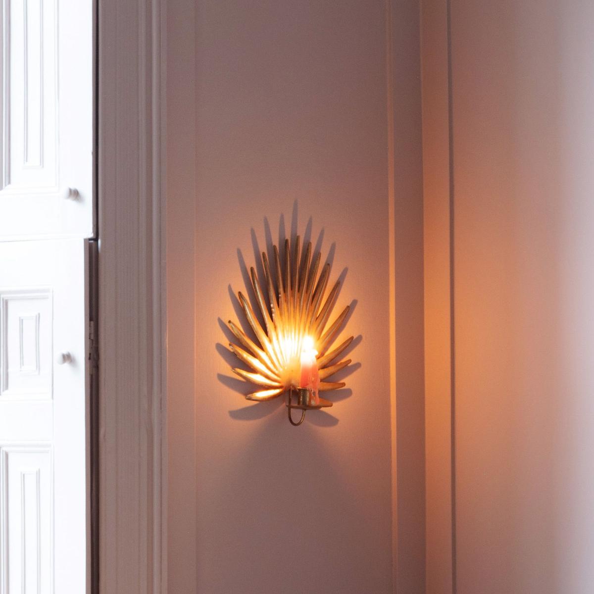 I love this gold palm candle holder wall sconce for its bold, sculptural design that instantly adds character to a room. It works well in eclectic, boho, or tropical-inspired spaces like living rooms, hallways, or even bedrooms where a statement piece is desired. Practical styling tips include pairing it with simple, understated candles to highlight the striking palm motif, and installing it at eye level or slightly above for the best visual impact. It’s a versatile piece that can elevate both modern and vintage interiors when used as an accent or in a symmetrical arrangement for added drama.