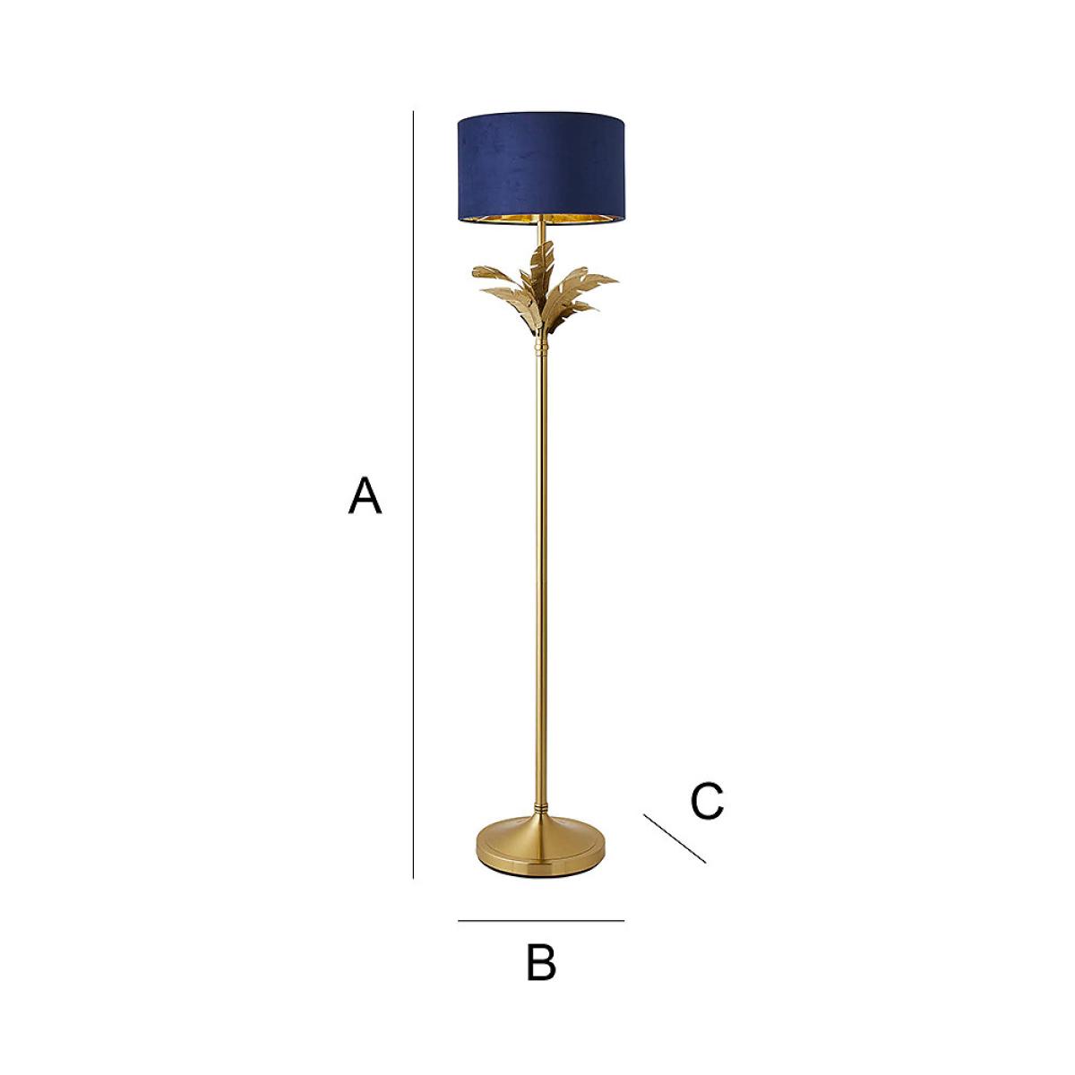 Gold Palm Leaf Floor Lamp with Velvet Drum Shade