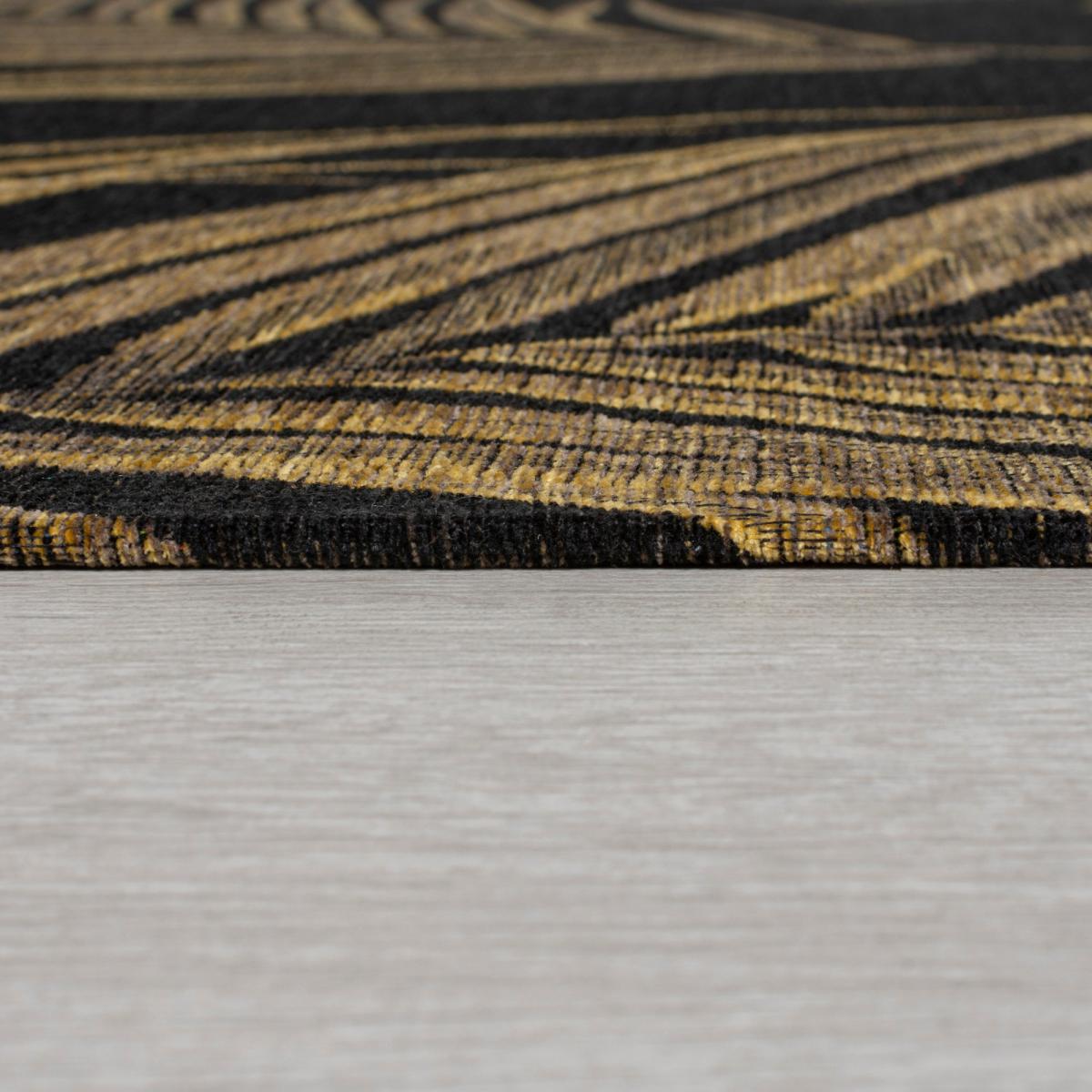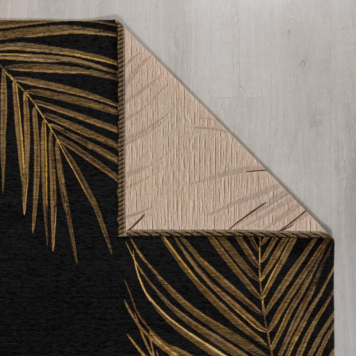 Add a touch of luxe to your space with the Gold Palm Leaf Rug, with glamourous gold detailing. Perfect for adding a touch of the tropical trend to your space. In low-profile acrylic blend the Gold Palm Leaf rug is perfect for high-traffic areas or under furniture, we love using this low-maintenance rug to add some glam to dining rooms. This is a machine-made rug. When opening, re-roll your rug pile out and leave in a warm room for 24 hours before putting in place, this will help to reduce wrinkles and curling from packing. A small amount of fibre loss is normal on a new rug. Do not pull any loose threads, please cut them carefully with scissors to remove. Avoid prolonged exposure to direct sunlight as this may cause fading of the colour. Turn your rug regularly to ensure even wear and reduce pressure marks from furniture. Before using any cleaning products on your rug, test on an inconspicuous area first to ensure it does not affect the colour. Clean spills immediately by blotting with a clean dry white cloth - do not rub as this may stain the fibres. Vacuum your rug regularly to remove everyday dirt, we recommend the use of a suction type vacuum cleaner as a rotating vacuum brush can cause damage to the pile surface. We recommend the use of an anti-slip mat beneath your rug to prevent it from slipping and sliding out of place. Latex is used on the back of this rug. Please do not leave babies or young children unsupervised on this rug.