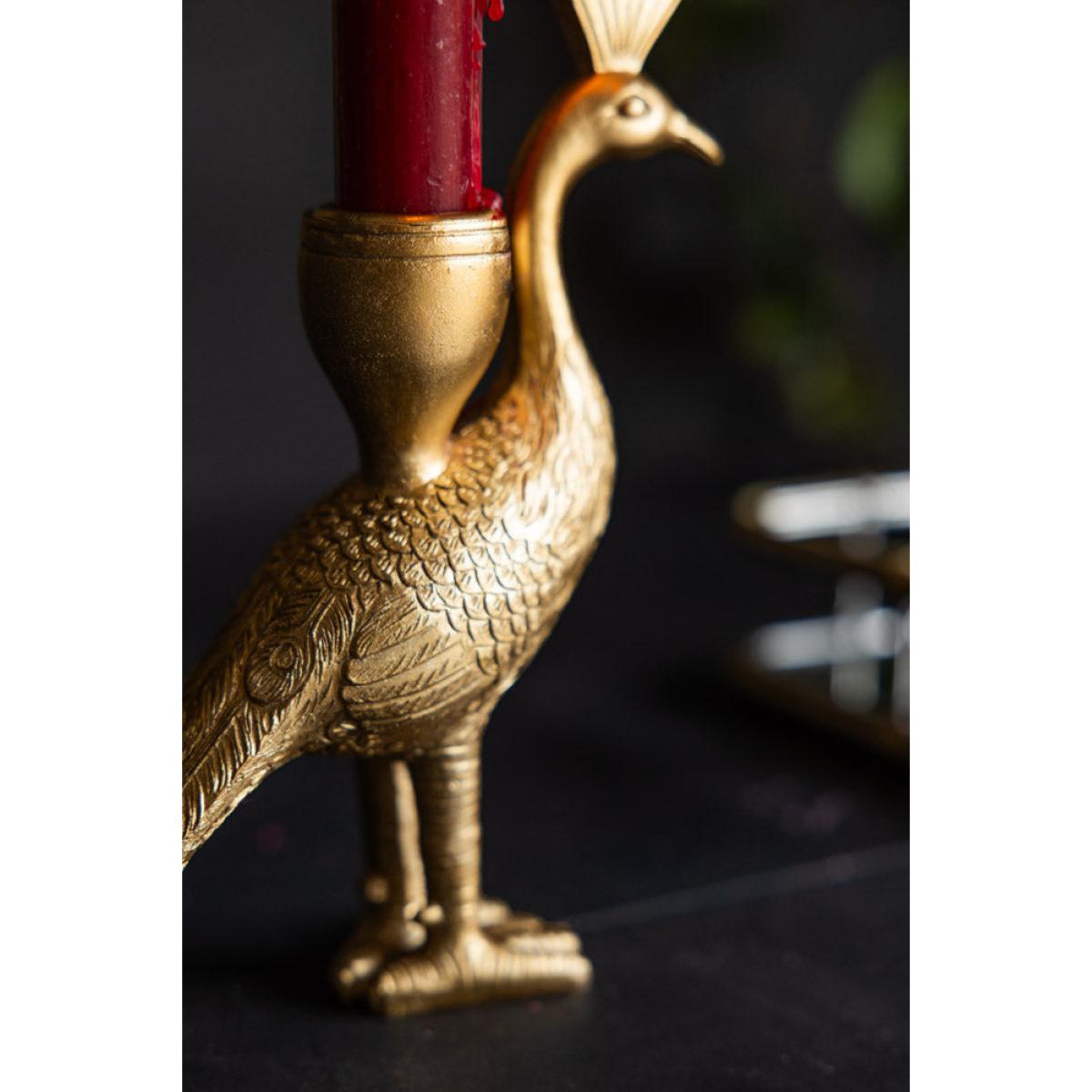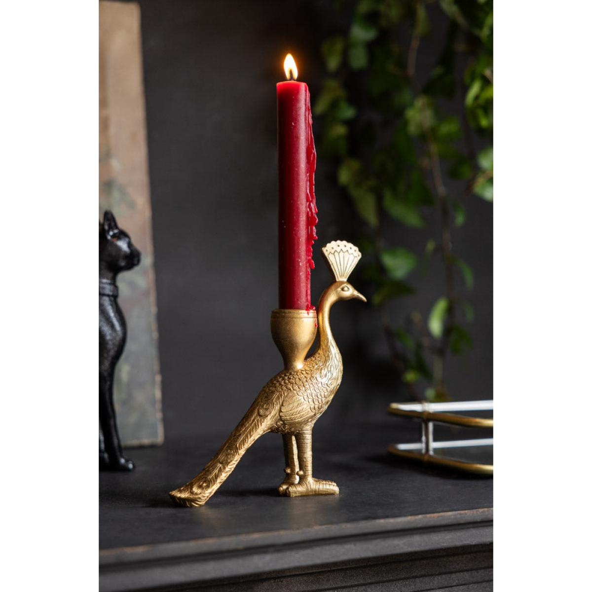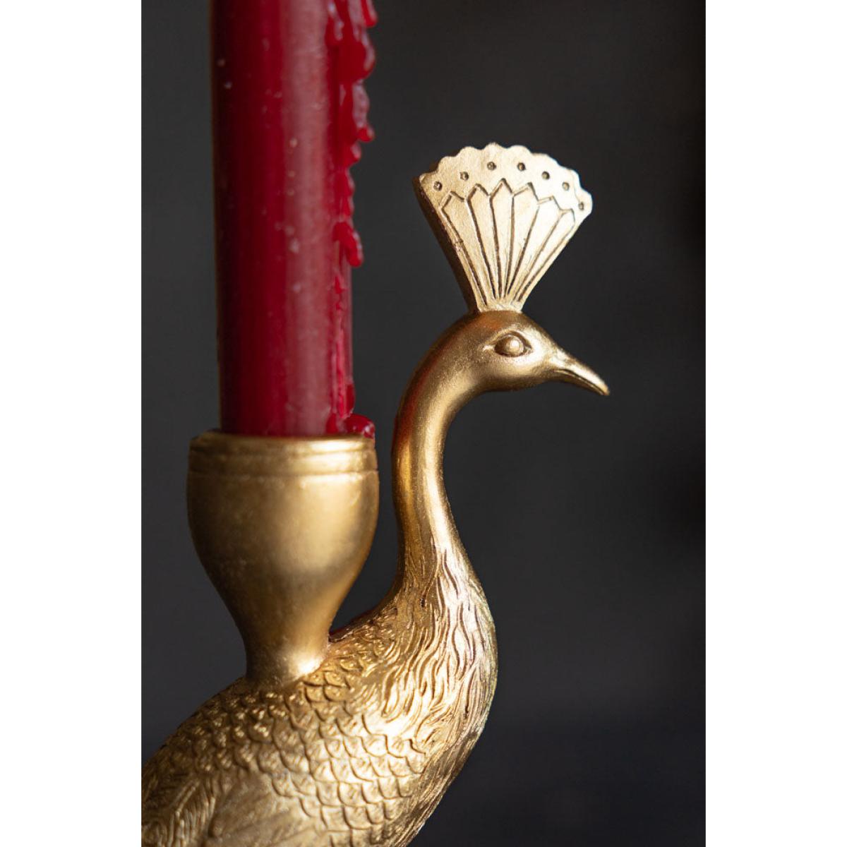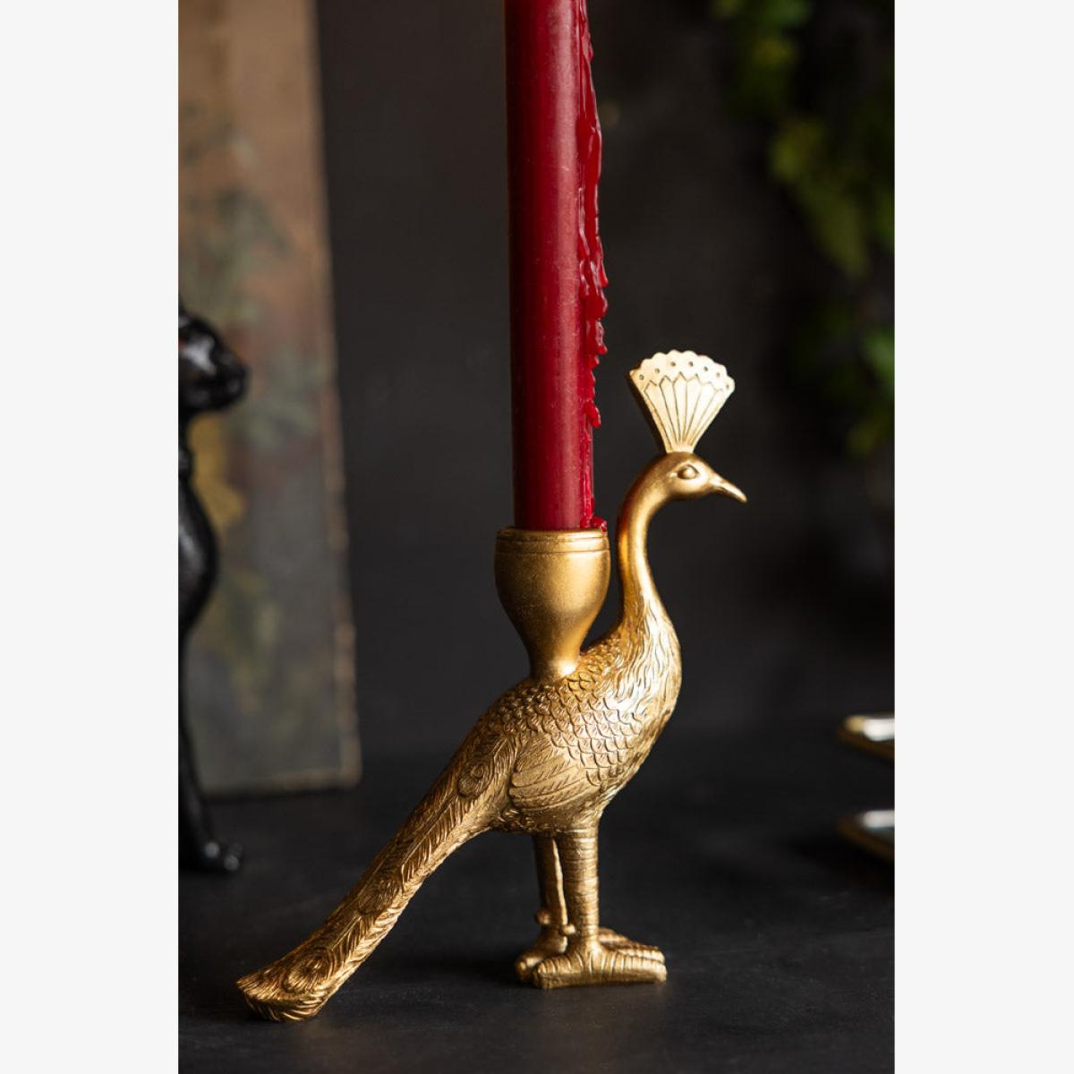 I love this peacock candlestick - its striking gold finish and detailed design bring a touch of luxury and personality to any space. It works particularly well in eclectic or boho interiors, but can also add an unexpected accent in more modern or minimalist settings when styled thoughtfully. For practical tips, try pairing it with rich, deep-hued candles or contrasting textures like matte or matte-black surfaces to make it really stand out. Placing it on a sideboard or mantelpiece alongside other textured accessories will help highlight its ornate design while keeping the overall look cohesive.
