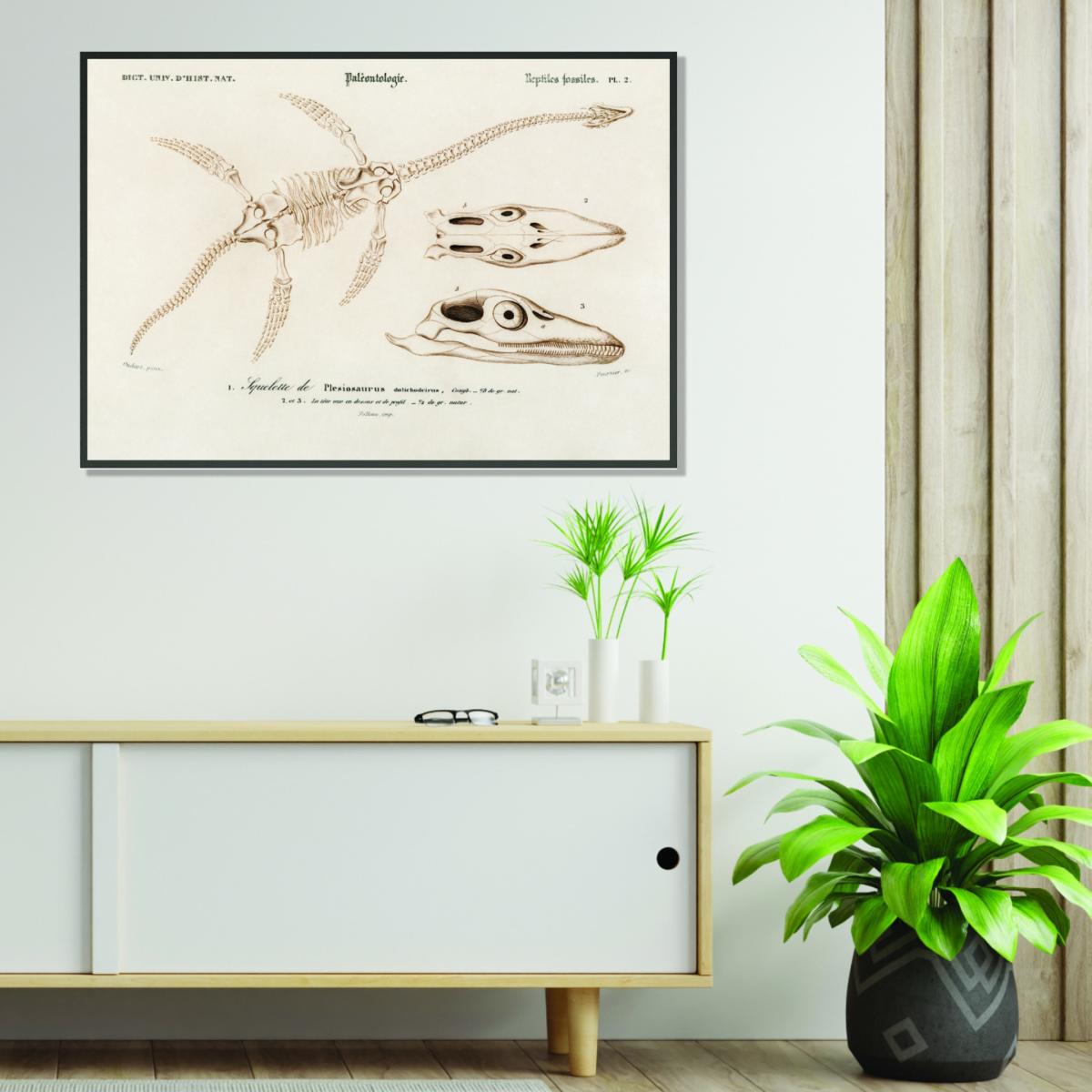 I really like this gold plesiosaur print because it adds a touch of vintage intrigue and scientific charm to a space. Its neutral tones and detailed illustration work well in both modern and traditional interiors, especially when paired with other natural history artefacts or minimalist décor. It’s a great choice for a study, hallway, or a family room where a subtle conversation starter is welcome. To style it effectively, consider framing it with a simple matte in black or white to keep the focus on the artwork, and hang it at eye level for maximum impact. Incorporating it alongside organic textures, like wood or linen, will help ground the look, making the print both a scholarly and stylish addition.