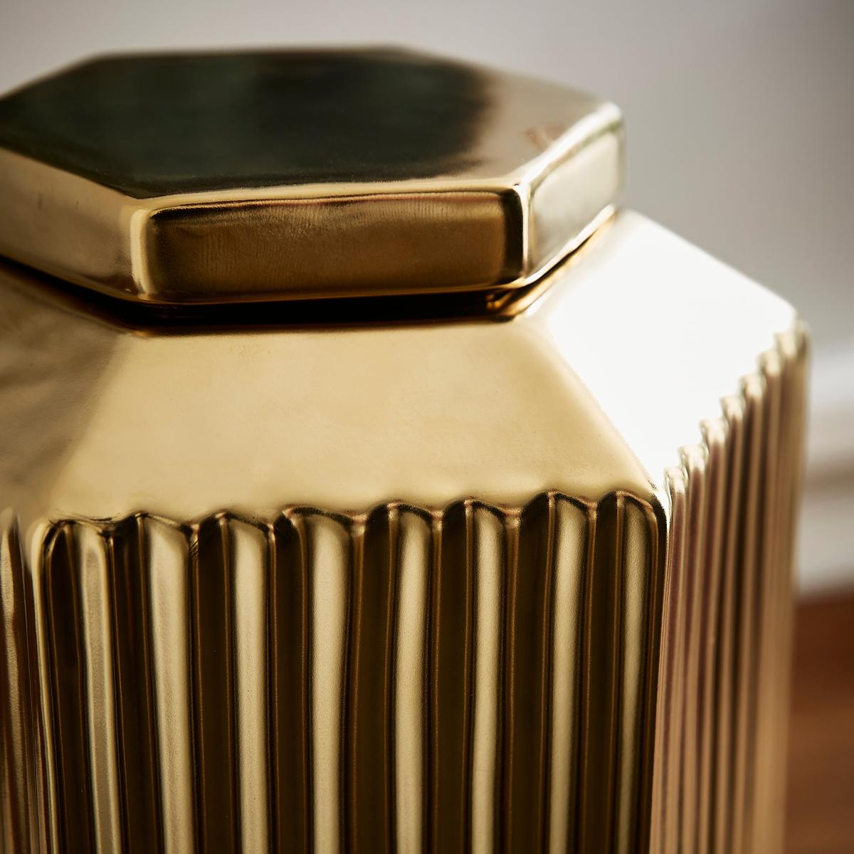 Gold Ribbed Decorative Hexagonal Ginger Jar