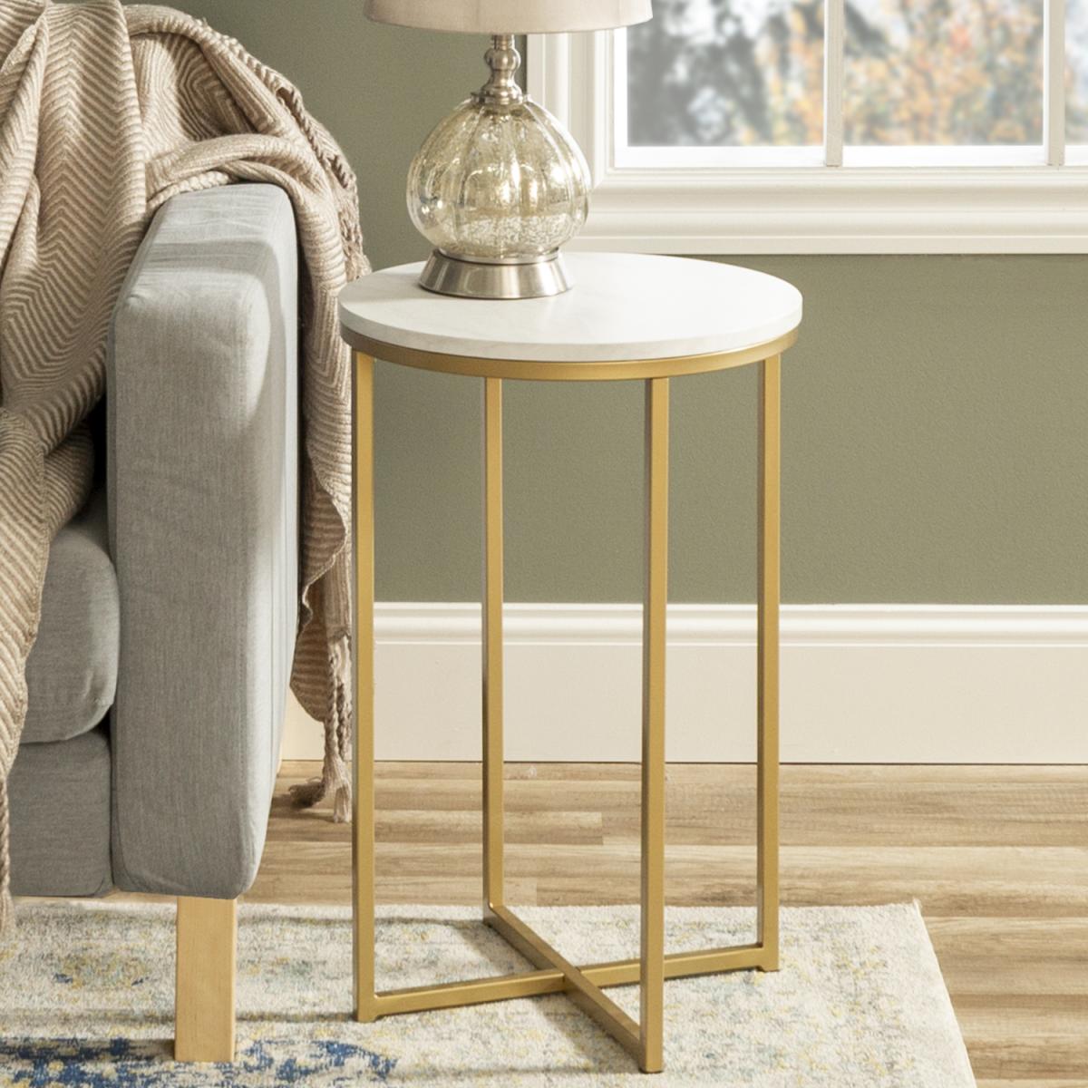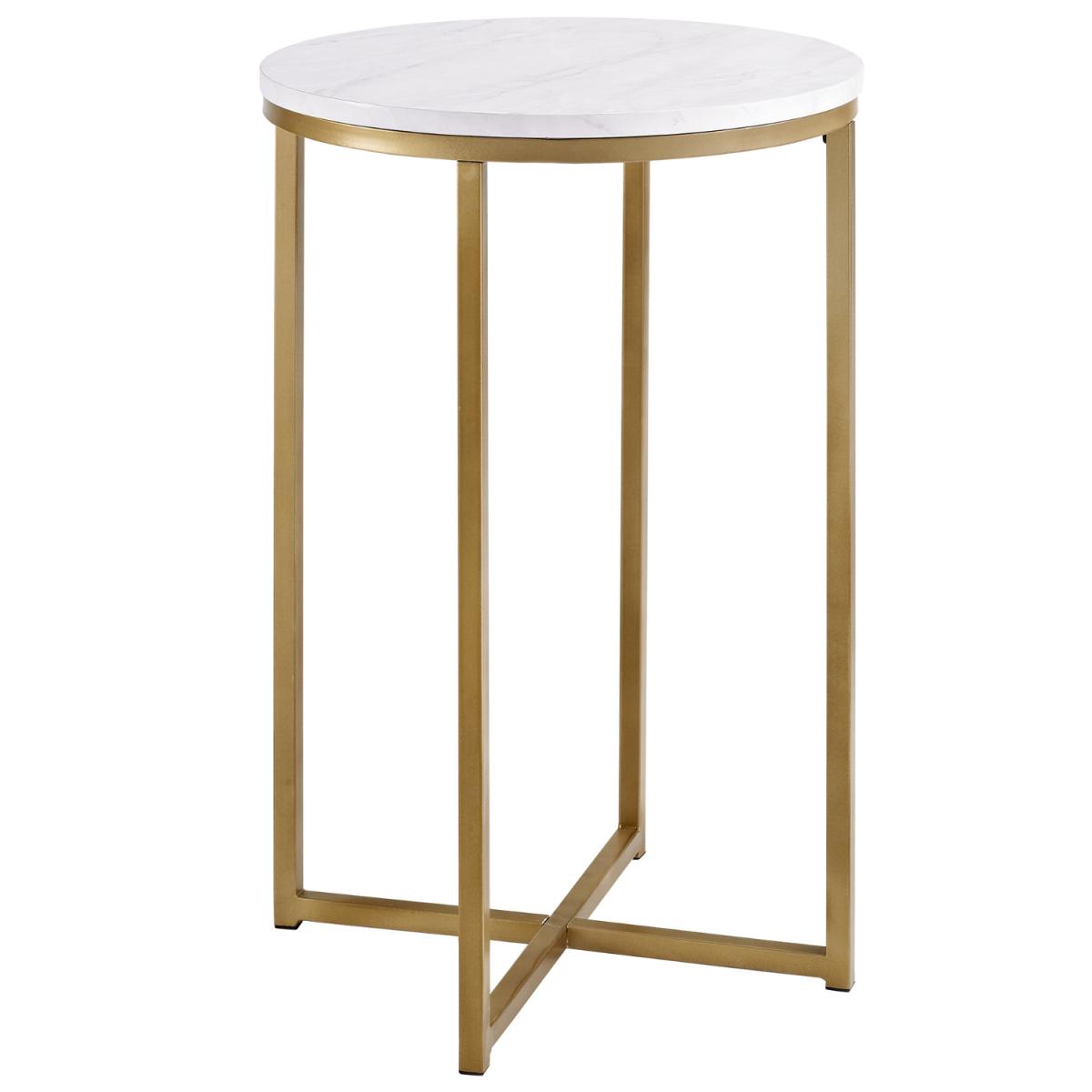 Dimensions H61cm x W41 x D41cm Classy yet convenient this must-have round marble side table is for sure to add an extra element of elegance to any room in your home. Use as an accent table if you pair it with our matching round coffee table or alone as an end table for your own unique arrangement. Created with a sturdy gold metal frame and a stylish marble top. This side table will add a chic and glam touch in your home. Features. Sturdy metal frame to hold your reading material a lamp or decor on the table top Metal base is painted in a gold colour for a chic and glam statement. Durable faux marble table top. Mix of modern and glam style to add into your home Ideal as an end table or side table in your living room or nightstand in bedroom. Colour – Gold Easy assembly with step-by-step instructions..