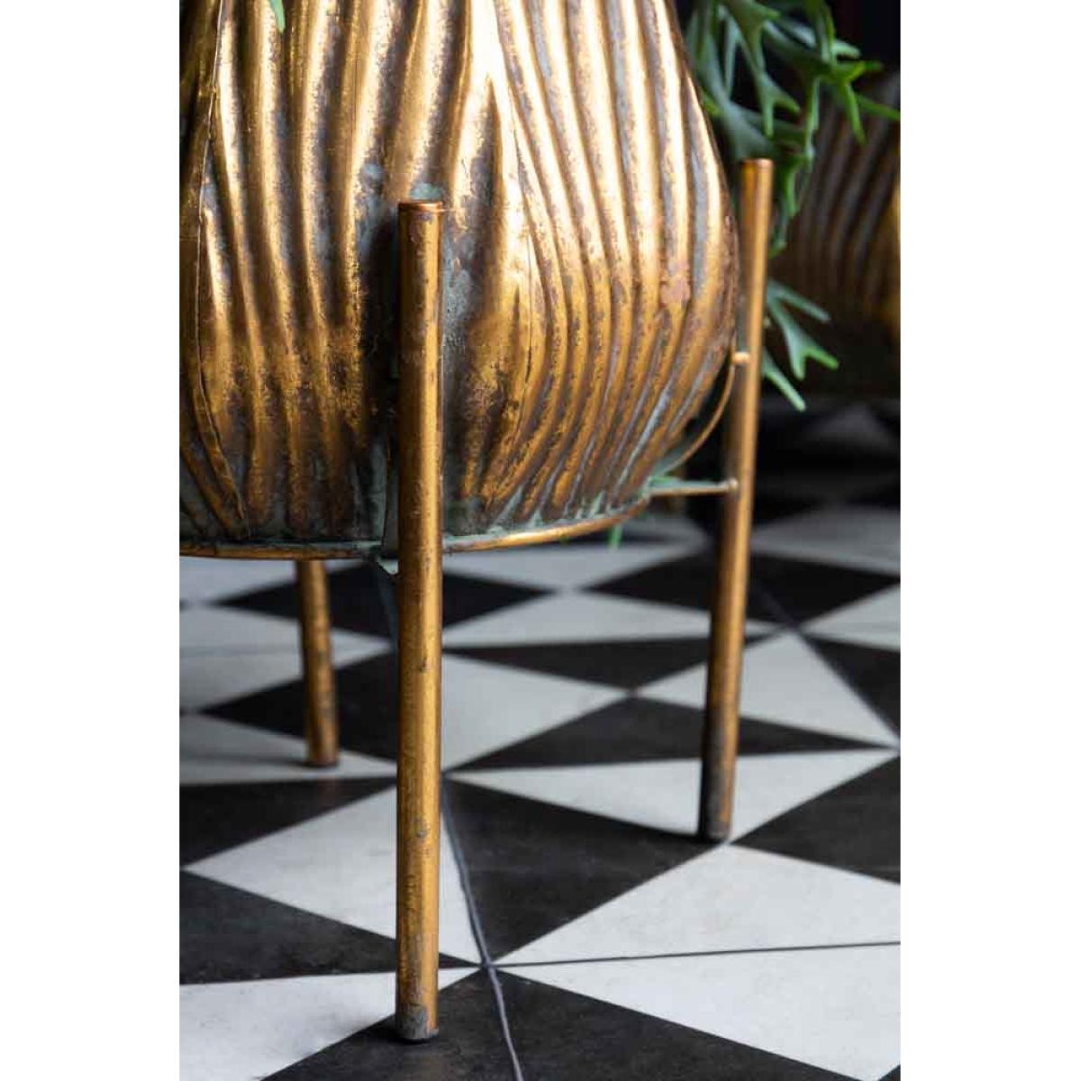 About The Gold Scallop Planter On Stand A true statement piece, the Gold Scallop Planter On Stand will elevate the look of your plants with show-stopping style. Featuring a tall planter with a narrow top and four legs, in an intricate scallop effect design that exudes beautiful textural grooved detailing. To top it off, this large planter offers a luxurious gold colour in a rustic aged finish, giving an oh-so-charming look that’ll pair so delightfully with the rich green colour of foliage. This statement planter is elevated from the ground making it the perfect piece for creating eye-catching displays. To prevent damaging the interiors, we suggest using faux plants for these gorgeous planters. Why We Think You’ll Love The Gold Rustic Planter On Stand We love the aged finish of this gold planter, the intricate scallop design offers hints of imperfections that make it all the more unique. What’s more, this elevated plant pot encourages you to explore various heights and shapes within your interior, which will only make your home look even more interesting. This plant stand is fabulously big and beautiful, we can’t wait to get out hands on it! How To Style The Tall Planter On Stand Indoor planters instantly create the ultimate style spot. Display this raised planter in your dining or living room, to break up different zones with a statement piece. Pairing it with the gorgeous Wide Gold Scallop Planter On Stand will enable you to play around with height, scale and texture bringing marvellous variation to your space, so what’s not to love?!
