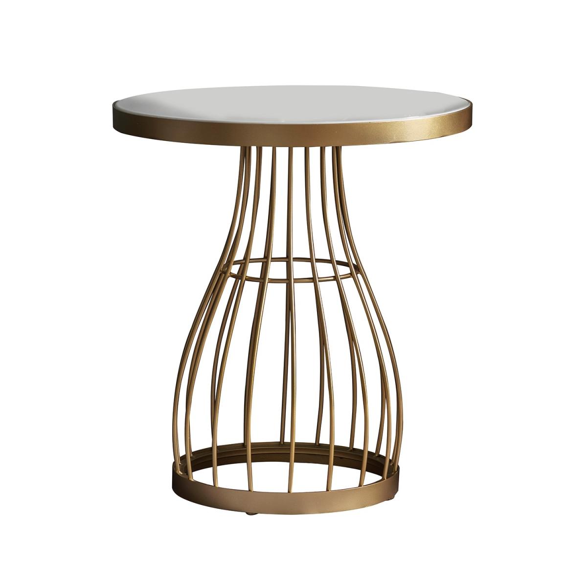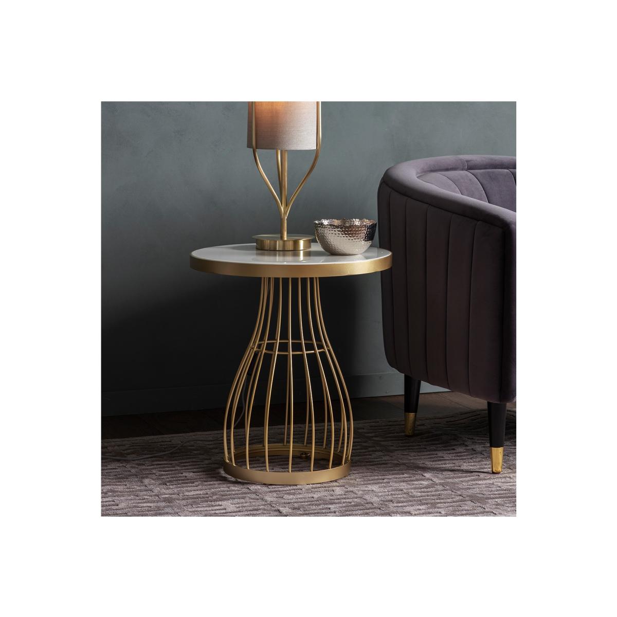 Gold Side Table with White Marble Top - Caspian House