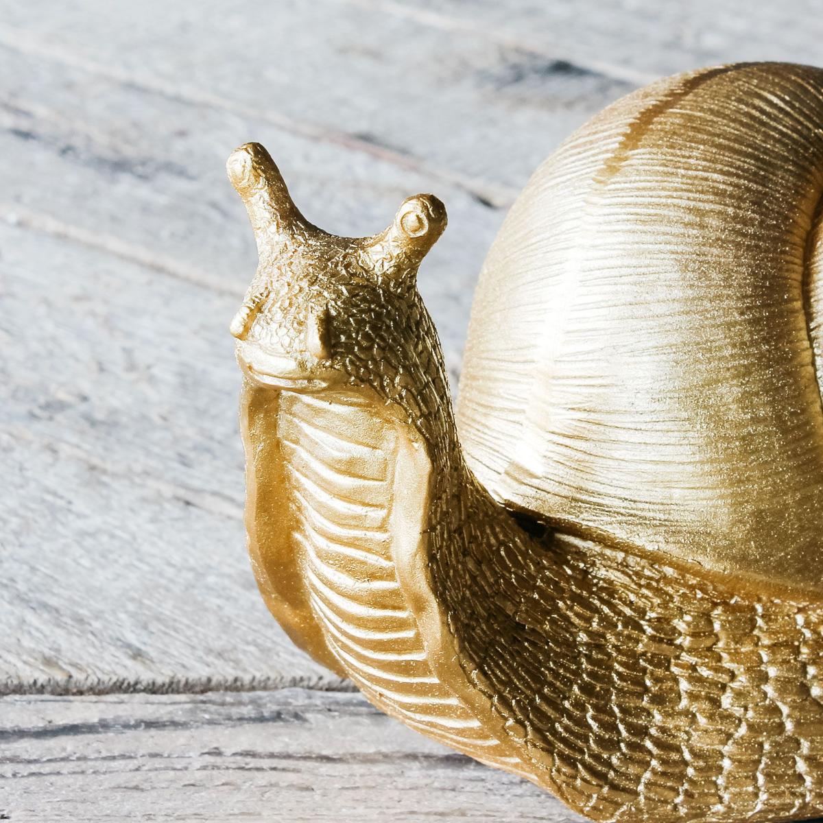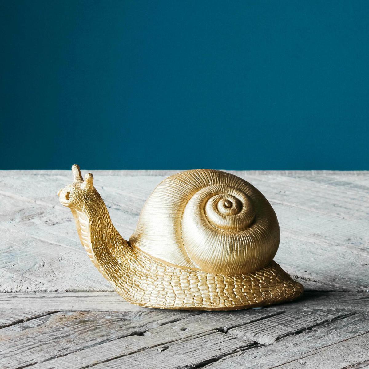 Slowly save money with the help of a glittering gold coin bank in the shape of a giant snail.