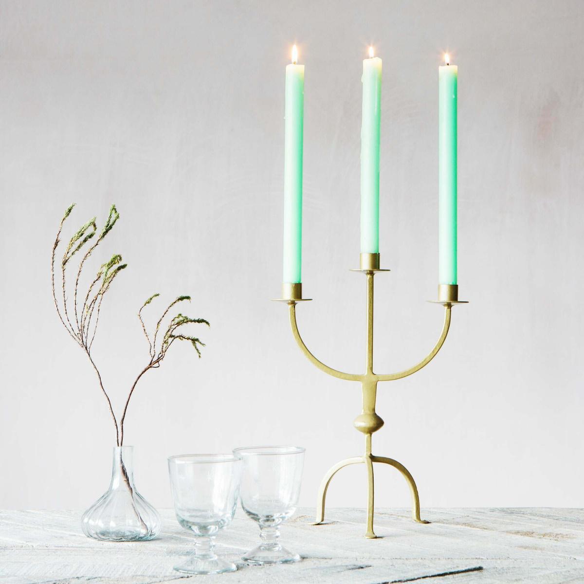 I love this gold triple candle holder for its modern yet elegant aesthetic, making it a versatile piece for various interior styles. It works particularly well in contemporary and minimalist spaces, adding a pop of metallic shine without overwhelming the decor. To style it effectively, try placing it on a neutral-toned dining table or console for a sophisticated touch, or pair it with simple ceramics and natural textures for a balanced look. Practical tips include keeping the surrounding surfaces uncluttered to highlight its sleek form, and alternating candle heights or colours for added visual interest. Overall, it’s an impactful yet understated accessory that can elevate everyday spaces or serve as a statement piece in festive arrangements.