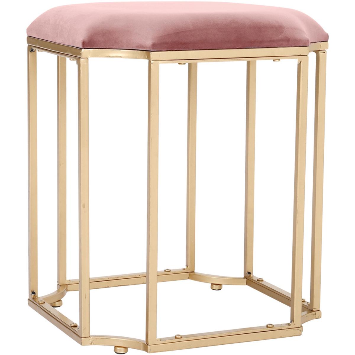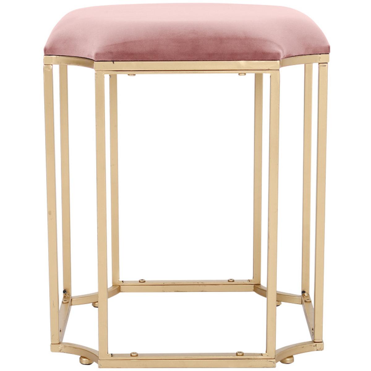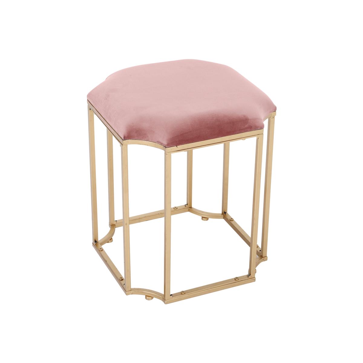 Gold Velvet Footstool Square or Hexagon - Pink / Hexagon