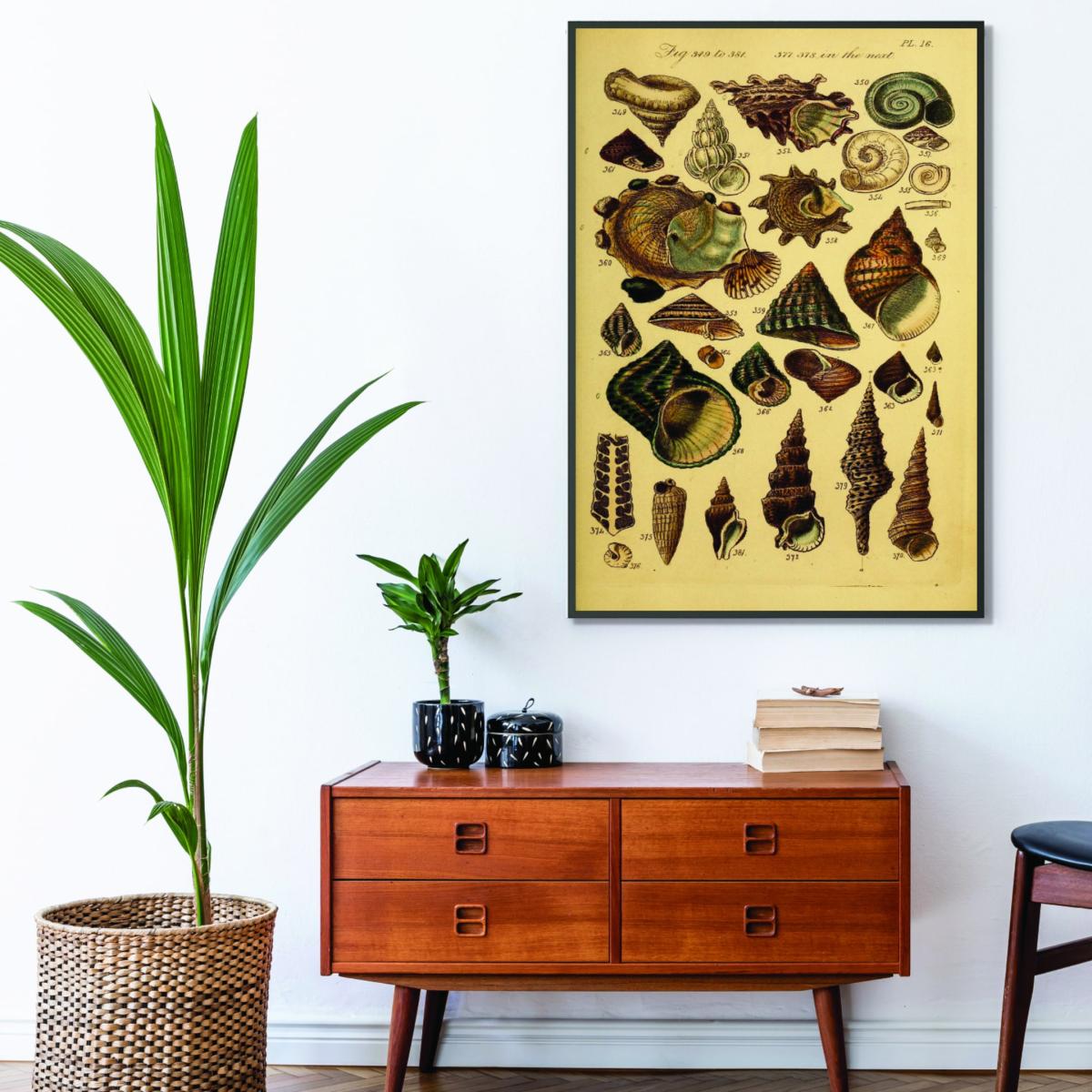 I love the vintage shell print because it adds an intriguing maritime touch that works well in both coastal and eclectic interiors. Its colours and detailed illustrations make it a versatile piece-great for layered displays in living rooms or bedrooms with neutral tones, or even as a statement piece in a bathroom or beach-themed space. Practical styling tips include framing it with a sleek border for a modern look, or pairing it with antique accessories for a vintage vibe. It’s also effective when grouped with other botanical or marine-themed artwork to create a curated gallery wall. This print is an easy way to introduce textures and storytelling to your decor scheme.