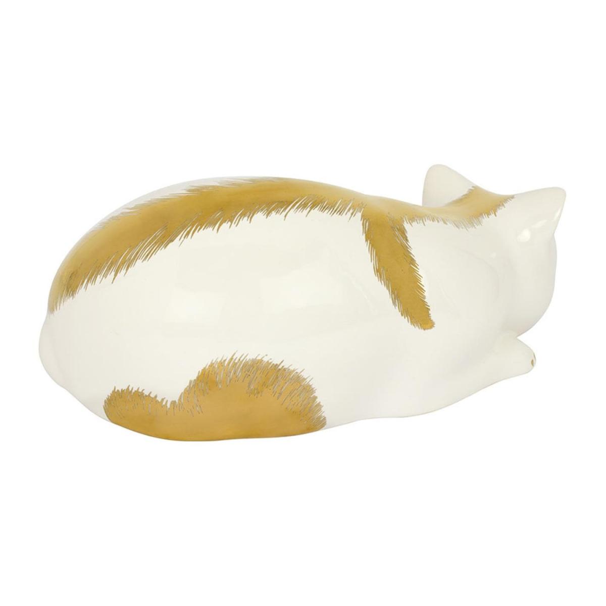 This gold and white cat ornament is a charming accent piece that can add a touch of elegance and playfulness to a variety of interiors. I love it for its versatile colour palette, which works well in both modern and eclectic spaces, especially when paired with neutral or minimalist decor. It’s ideal placed on a console table, bookshelf, or mantle for a subtle focal point. Practical styling tips include pairing it with other metallic accents for a cohesive look, or using it as a conversation starter in a collection of quirky ornaments. Its understated yet luxurious finish can elevate the overall aesthetic without overpowering the space.