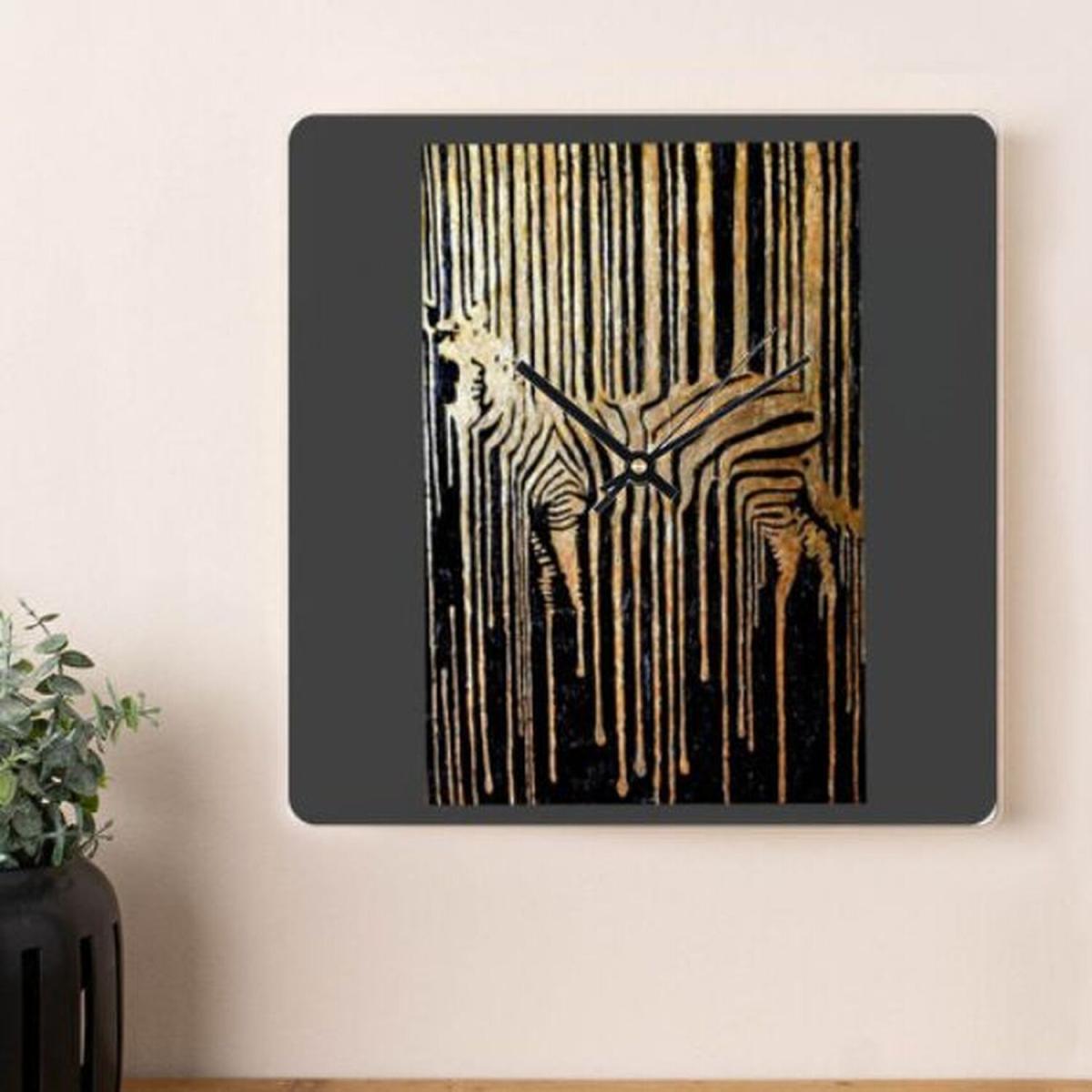 The Gold Zebra Wall Clock features a stunning design with a gold zebra pattern, adding a touch of elegance to any room. It includes accurate quartz movement for precise time keeping. The clock is made from durable materials, ensuring its longevity. It comes with a hanging hook on the back for easy installation and requires a single AA battery (not included). This eye-catching wall clock serves as both a functional timepiece and a stylish decorative piece for your living space.