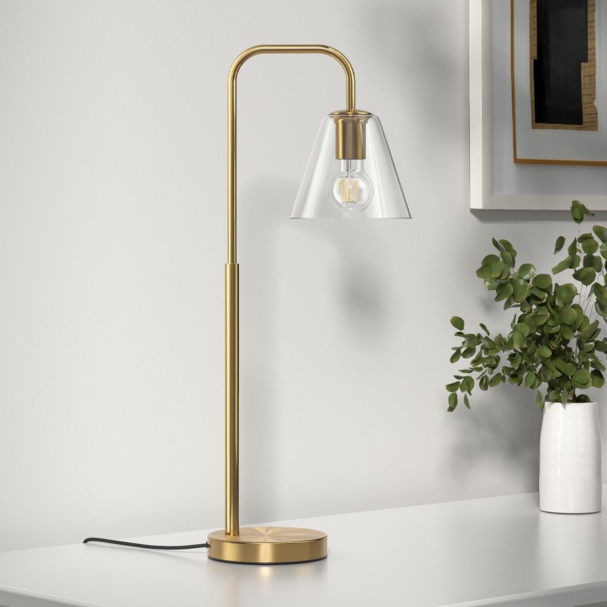 I really like this gold bedside lamp - it offers a sleek, modern touch with its clean lines and minimalist design. The gold finish adds a touch of luxury without being too flashy, making it versatile for both contemporary and classic interiors. It works particularly well in schemes that combine metallic accents or neutral tones, adding warmth and a hint of glamour. A practical styling tip is to pair it with textured bedding or natural materials like wood or linen to create a balanced look. The foot switch is super handy, making it straightforward to operate, while the adjustable arm and clear glass shade keep the design light and unobtrusive. Overall, it’s a stylish yet functional piece perfect for bedside tables or even living spaces that need a bit of understated elegance.