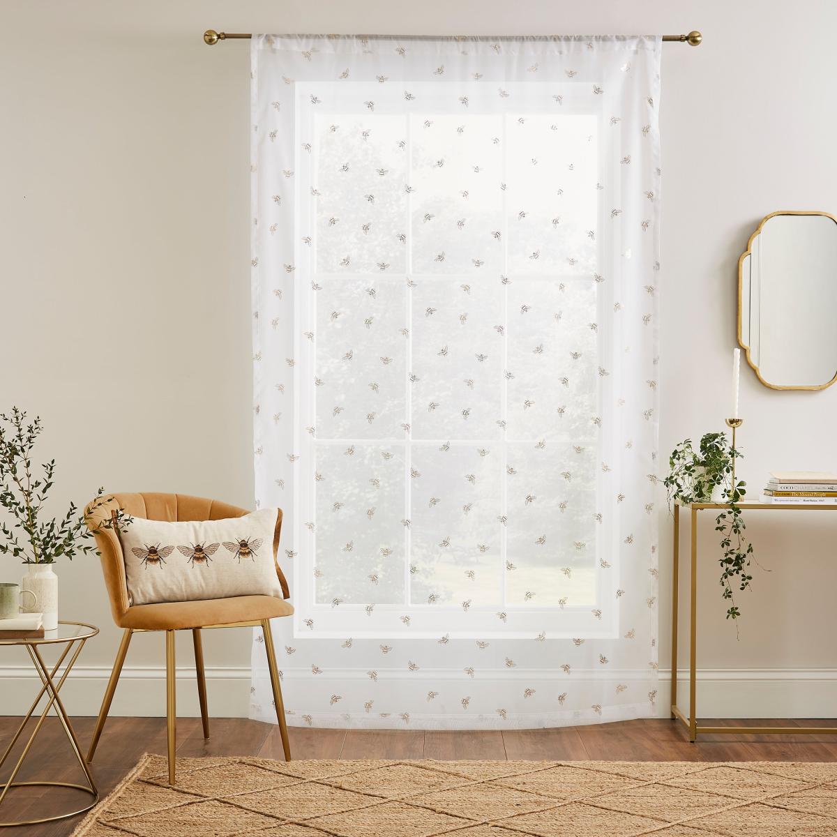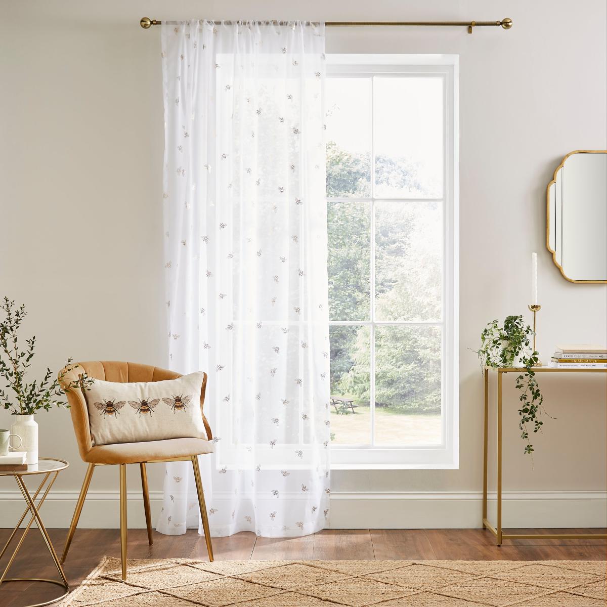 I really like the Golden Bees voile panel in white and gold for adding a subtle touch of luxury without feeling heavy. It works well in both contemporary and traditional interiors, especially when you want to introduce a soft, shimmering detail. I’d recommend pairing it with neutral walls and minimalist furniture for a clean, airy look, or dressing it up with decorative tiebacks for a more formal setting. For practical styling tips, layering it with thicker curtains can help with light control and privacy, while leaving it sheer allows natural light to flood in, enhancing the room’s brightness. This panel is ideal for spaces where you want a refined, understated elegance that still feels fresh and inviting.