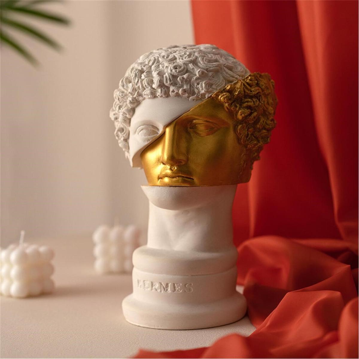 The gold and white Hermes sculpture is a striking piece that adds a modern yet classical touch to any space. I love how it blends traditional sculpture with contemporary accents, making it versatile for both minimalist and eclectic interiors. It works particularly well on a mantelpiece, sideboard, or a console table where it can serve as a focal point. For styling tips, consider pairing it with monochrome palettes or inserting it into a curated vignette with books and plants for added visual interest. Keep the surrounding decor simple to really let the sculpture command attention, or create contrast with textured fabric or rich colours for a bold statement.