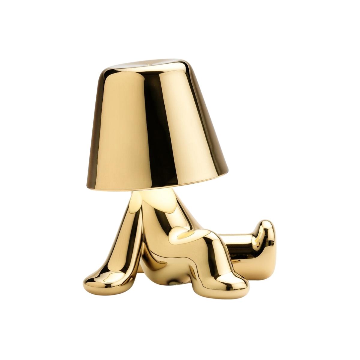 I’ve used this gold pup lamp in schemes that need a pop of metallic without heaviness. Its glossy finish and simple form suit modern urban flats or laid-back Scandi homes, adding warmth to monochrome palettes. For practical styling, place it on a minimal bedside table backed by a matte wall, or on a console alongside a couple of low-profile books to balance its height. It works best with neutral textiles so the shine stands out without overwhelming the space.