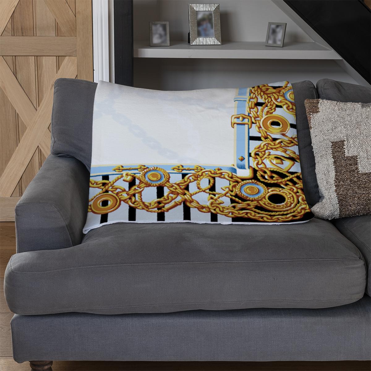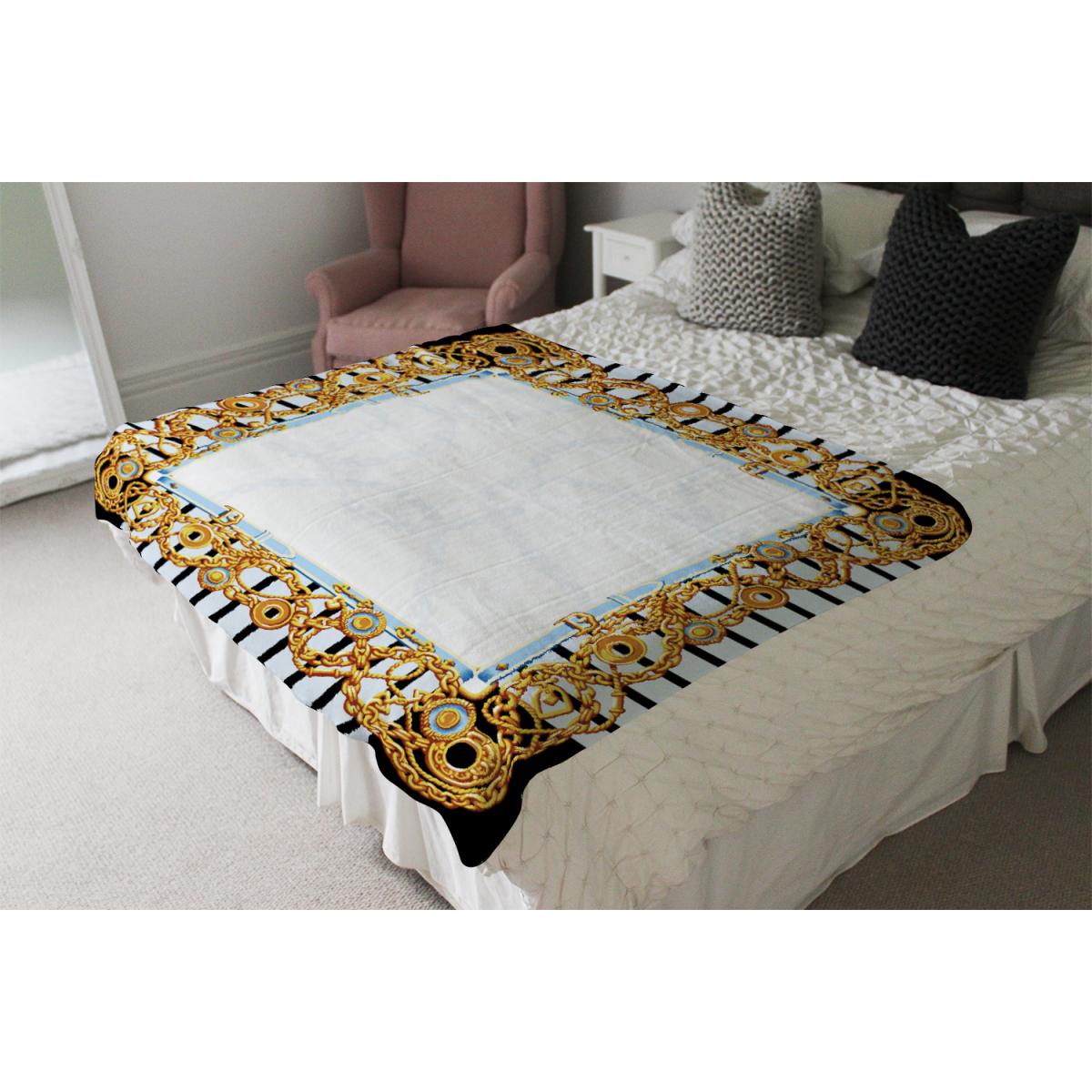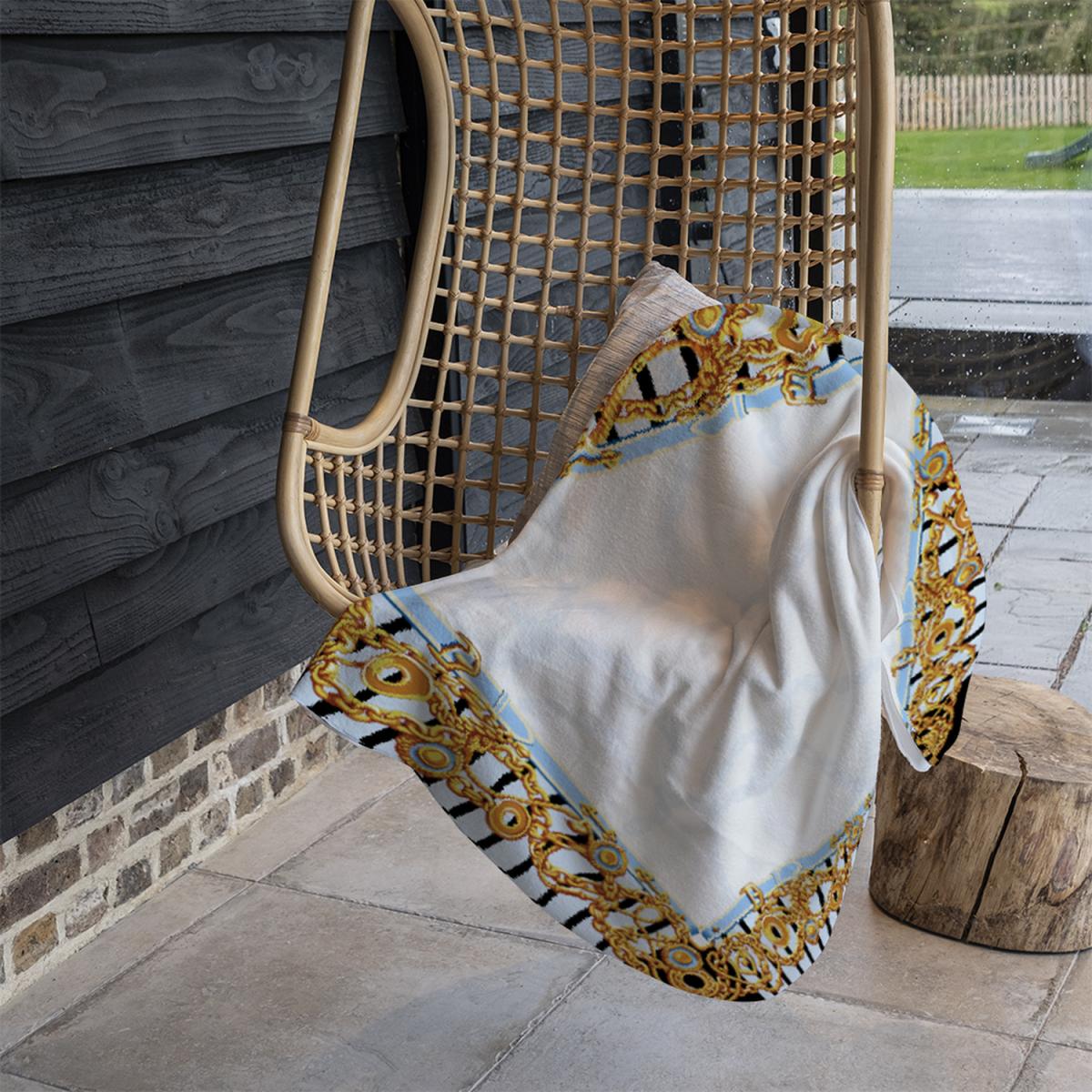 I love this throw because of its bold, luxurious Gold chain design, which adds a touch of glamour without being overly formal. It works well in modern boho or eclectic interiors, where a statement piece can elevate the overall look. For styling, drape it casually over a neutral sofa or bed to add warmth and a hint of opulence, or fold it neatly at the foot of a bed for a more polished feel. Pairing it with textures like velvet or leather can complement the metallic details and create an inviting, layered aesthetic. Its versatile colour and pattern make it an easy way to introduce a sophisticated touch to a variety of rooms.
