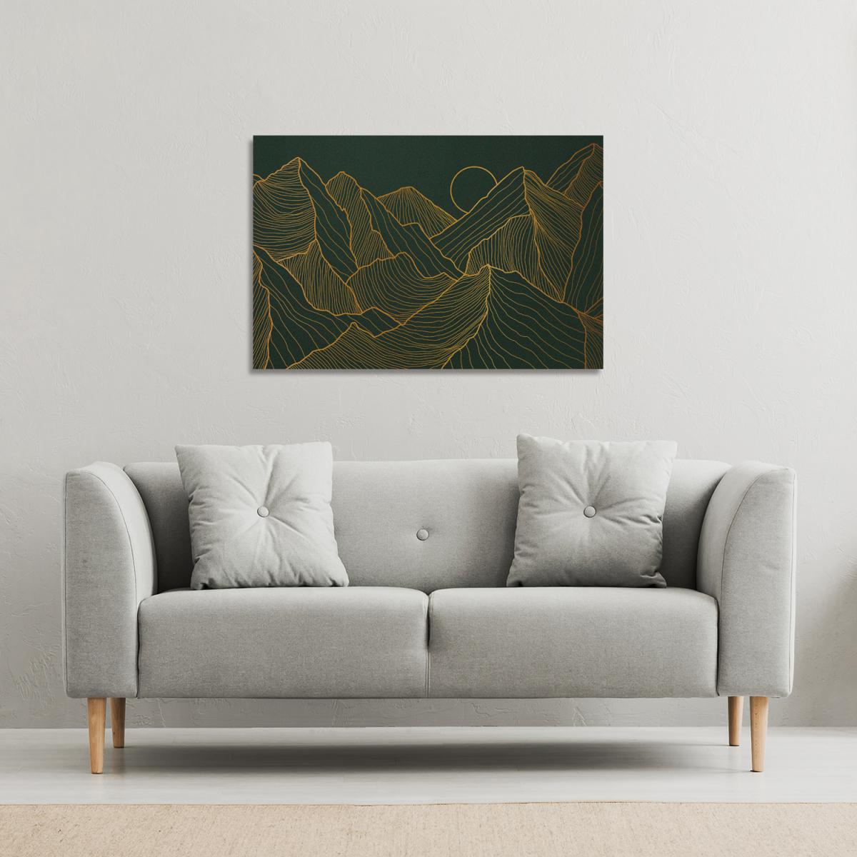 Golden mountain line art Canvas Print - Yellow / 61cm / 91cm