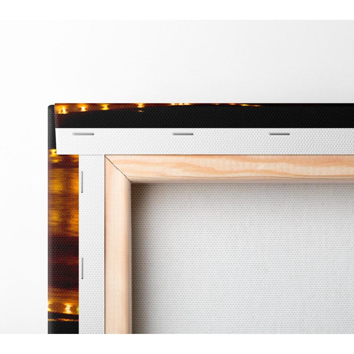Canvas printed on coated polyester canvas. Mounted on to a 44mm box frame, ready to hang.