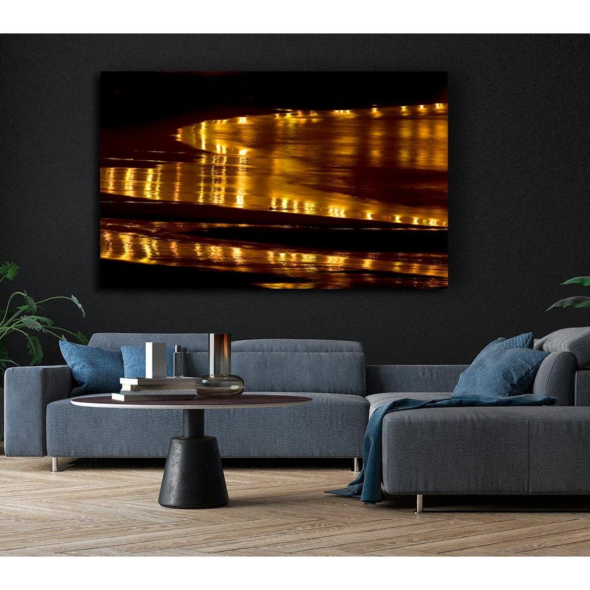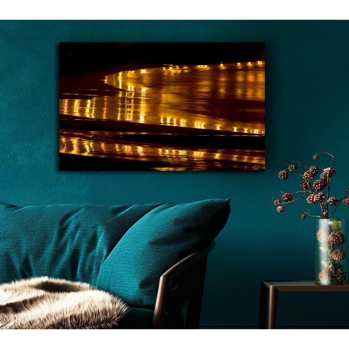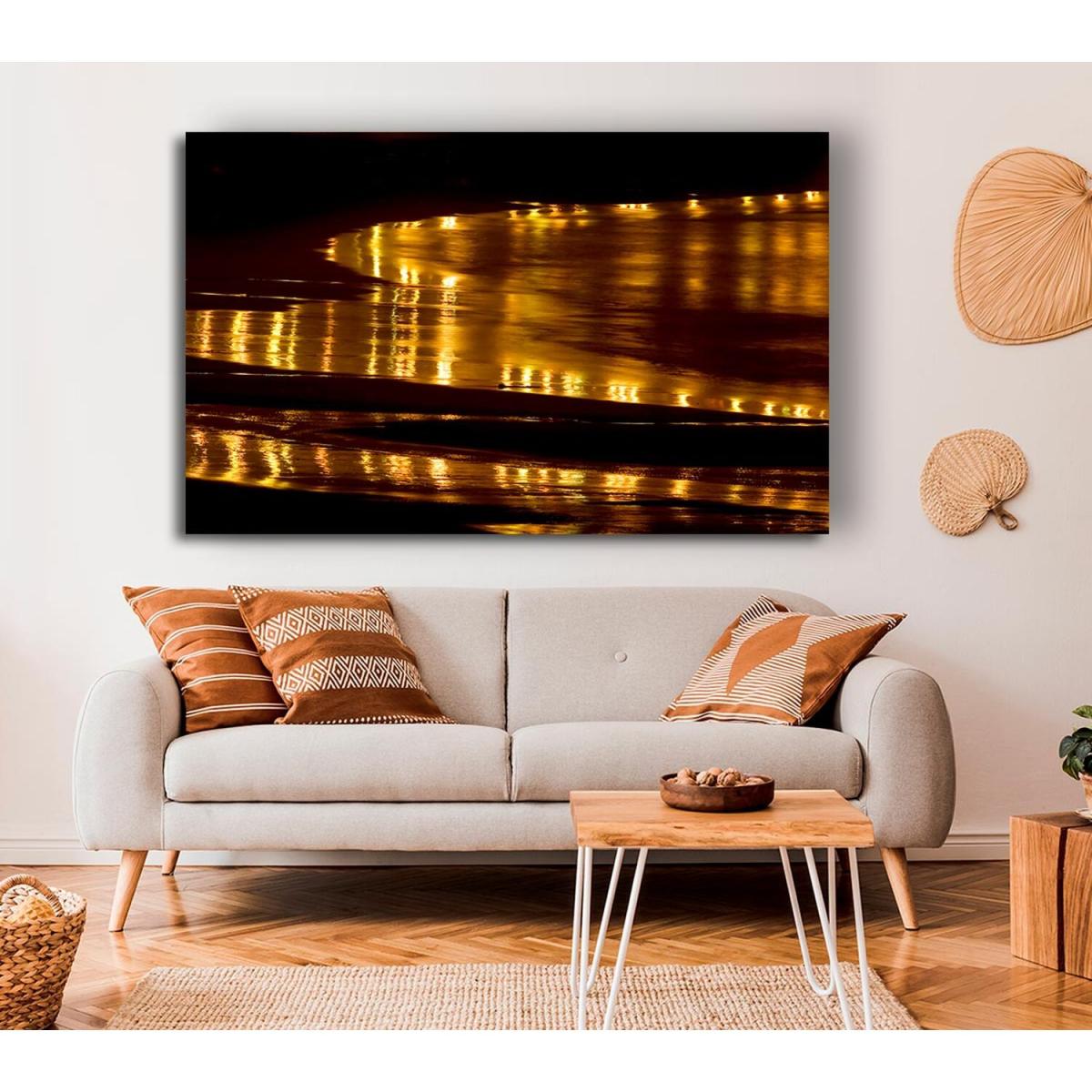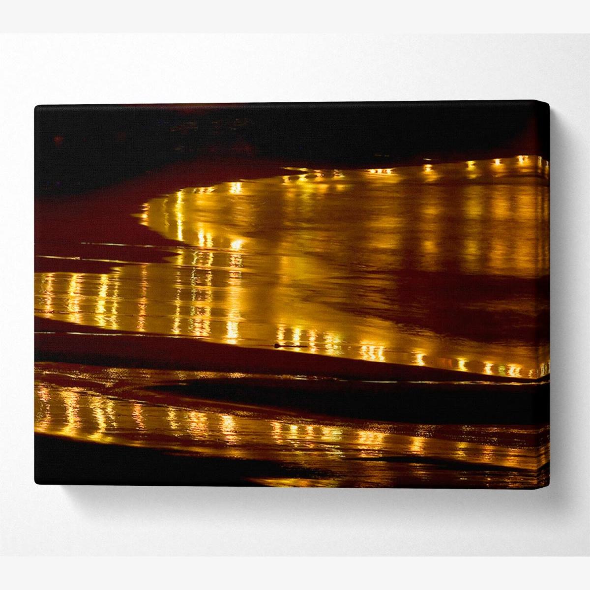 Golden Ocean Night Canvas Print Wall Art - Yellow / 101.6cm