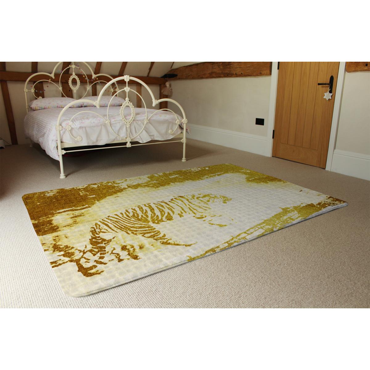The Golden Tiger Search Rug is a bold statement piece that works beautifully in contemporary or eclectic interiors. I love its striking gold tones combined with the animal motif, which adds a touch of exotic flair without overwhelming the space. It’s versatile enough to work in living rooms, bedrooms, or even eclectic offices-just keep the surrounding décor relatively simple to let the rug truly stand out. Practical styling tips include pairing it with neutral furniture to highlight its vibrant colours or layering it with textured cushions and throws for added depth. Its size makes it ideal for creating a focal point in a moderate-sized room while offering durability and comfort underfoot.