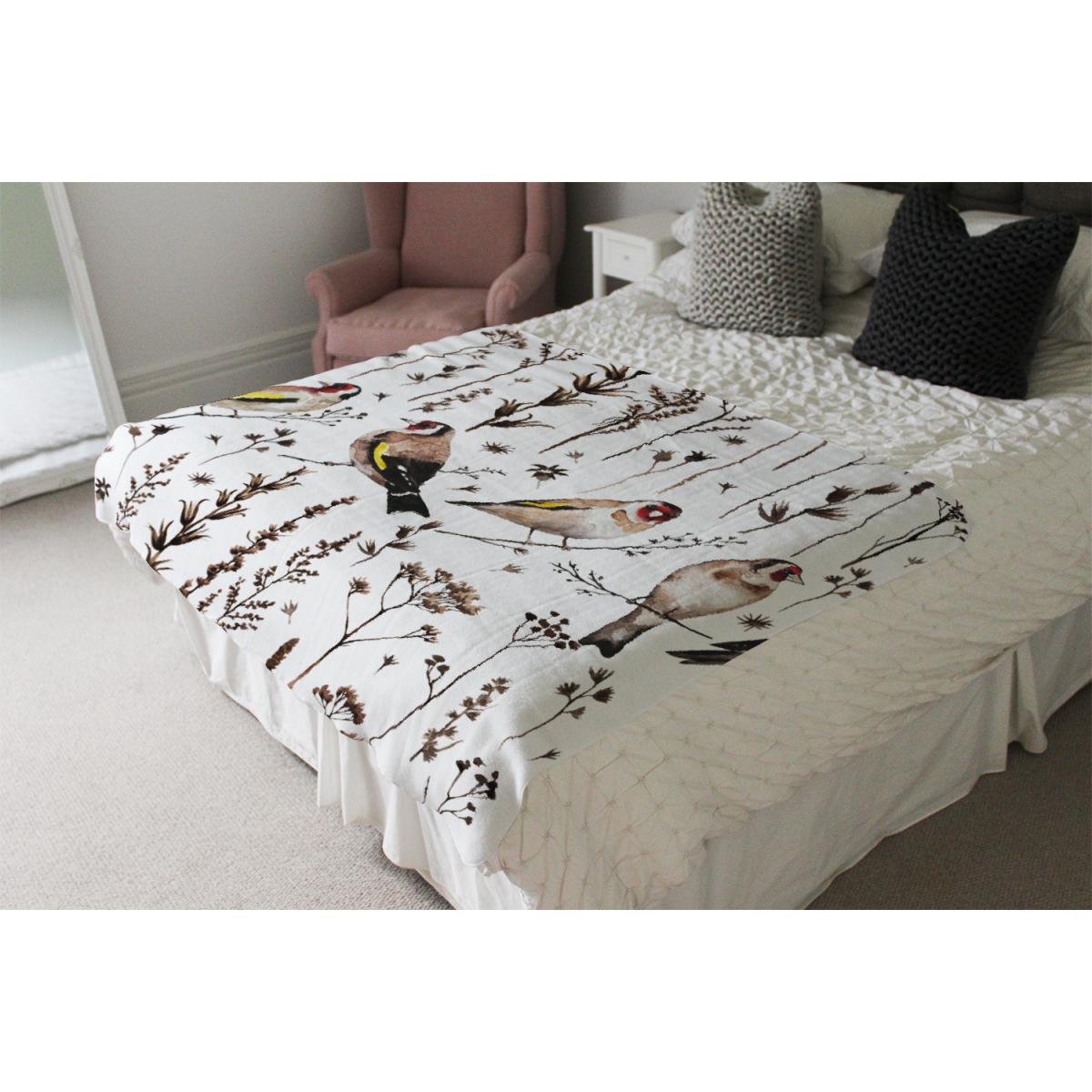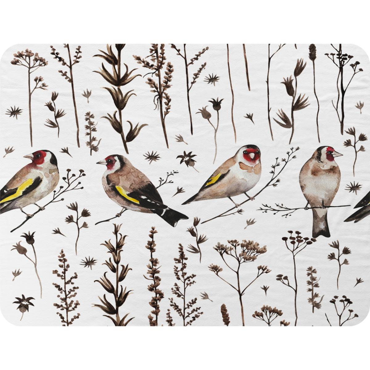 Goldfinches And Autumn Dry Plants Blanket - Brown