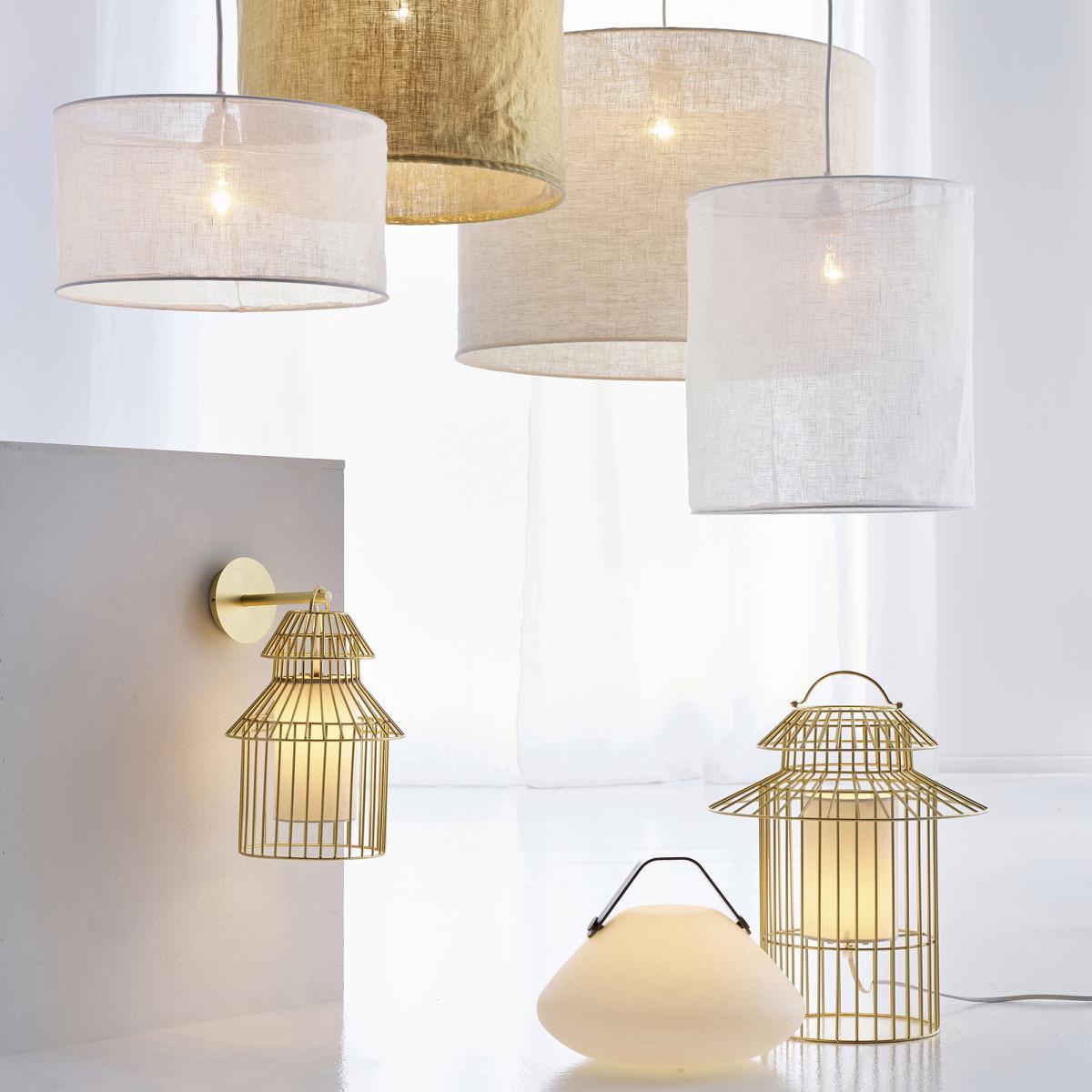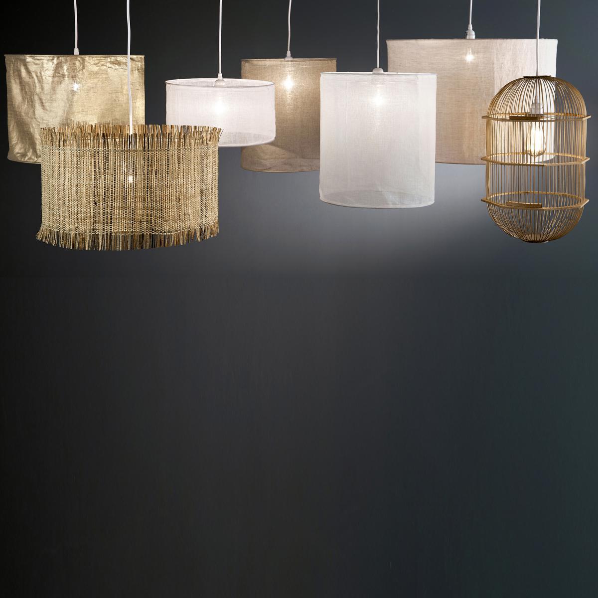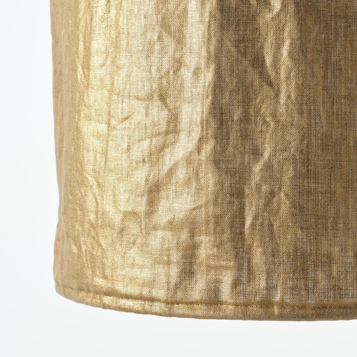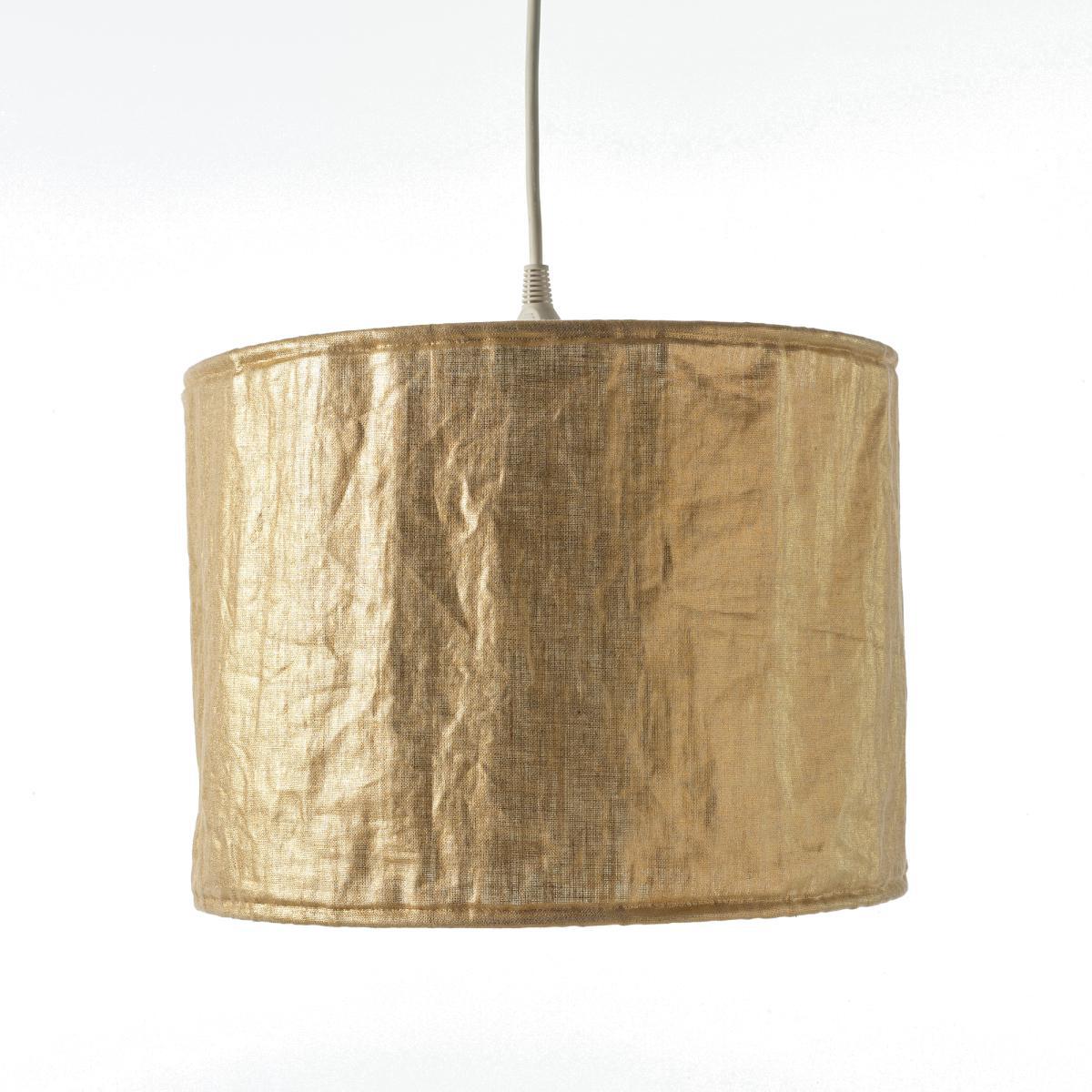 This golden crinkled lined lampshade is simply fabulous. Use by itself as a statement piece or in a range of neutral tones for a stylish collection. Product Details. White metal structure with an epoxy finish. Shade in 100% linen. Supports E27 bulb. Electrical cable not included. Made in France. Dimensions:. Diameter 40 x H30 cm.