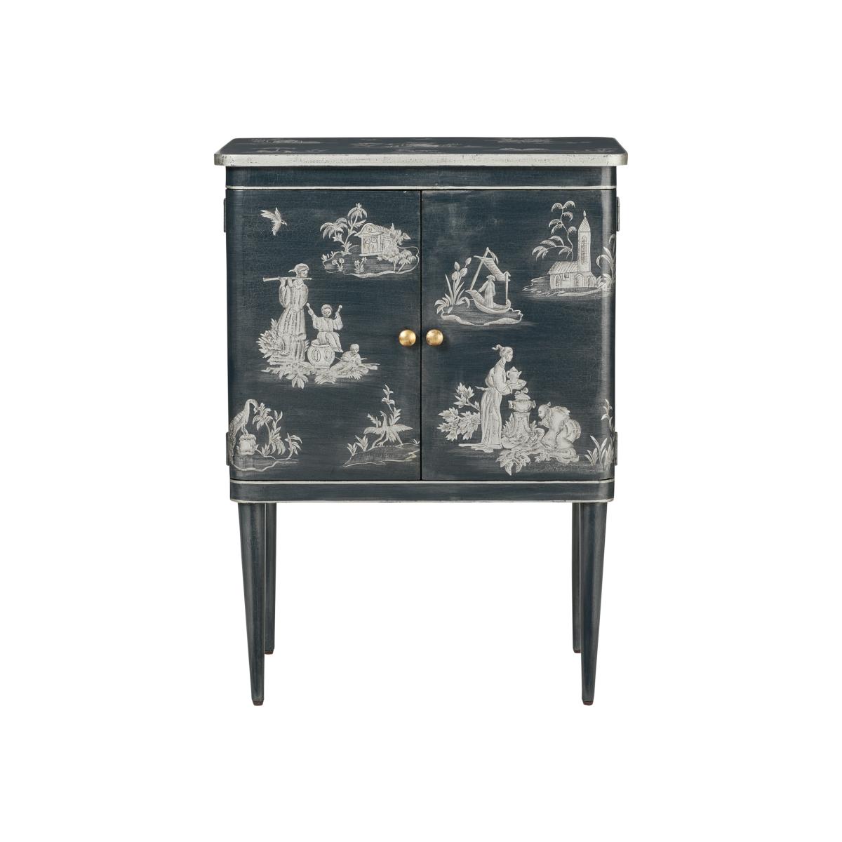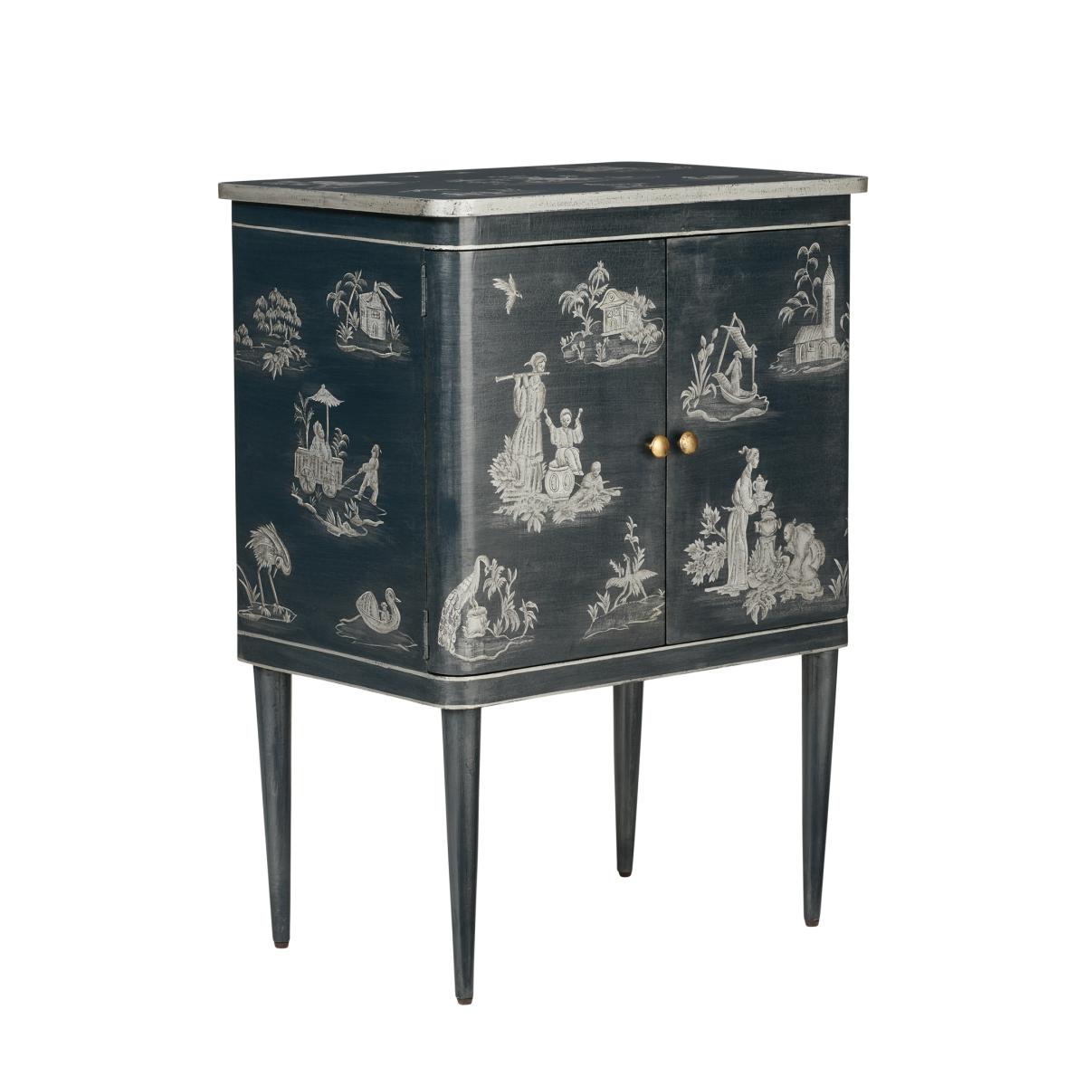 The Gonglin may be small in size, but it's certainly not lacking in character. Taking its name from a painter from the Ming dynasty period, it features a traditional Chinoiserie design, inspired by traditional Chinese paintings, which stands out against the dark backdrop, as well as offering plenty of storage and surface space.