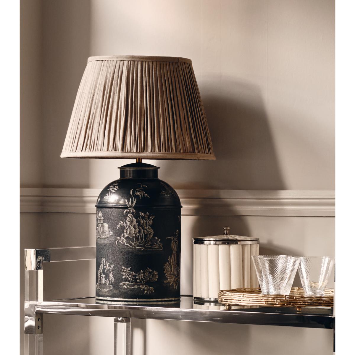 We have expanded our popular Gonglin Range to include this iron Table Lamp Base, hand-painted with accents of silver leaf that make each piece unique and will pick up the light from the bulb. Taking its name from a painter from the Ming dynasty period, it features a traditional Chinoiserie design, inspired by traditional Chinese paintings, which stands out against the dark backdrop.
