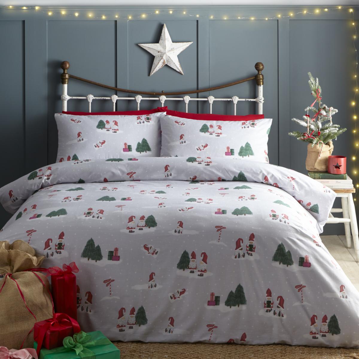 A Christmas Gonks duvet cover set is a festive bedding accessory that can add a touch of holiday cheer to your bedroom decor. Gonks are mythical creatures originating from Scandinavian folklore, often associated with Christmas and winter. They are usually depicted as small, gnome-like creatures with long white beards and pointy hats. A Christmas Gonks duvet cover set typically includes a duvet cover and one or two pillowcases, all featuring adorable Gonk designs. The duvet cover is made from soft and breathable material, such as polycotton, providing a cosy and comfortable sleeping experience. The pillowcases are also designed to match the duvet cover, making it easy to create a coordinated look. Adding a Christmas Gonks duvet cover set to your bedroom decor can be a fun and creative way to celebrate the holiday season. You can pair it with other festive accessories, such as Christmas-themed throw pillows, blankets, or string lights, to create a cosy and inviting atmosphere. It is also a great way to introduce a touch of whimsy and personality to your bedroom decor. Overall, a Christmas Gonks duvet cover set is a delightful addition to any holiday enthusiast's bedroom. It combines comfort, style, and festive spirit, making it a perfect choice for anyone looking to infuse their living space with a bit of Christmas magic.
