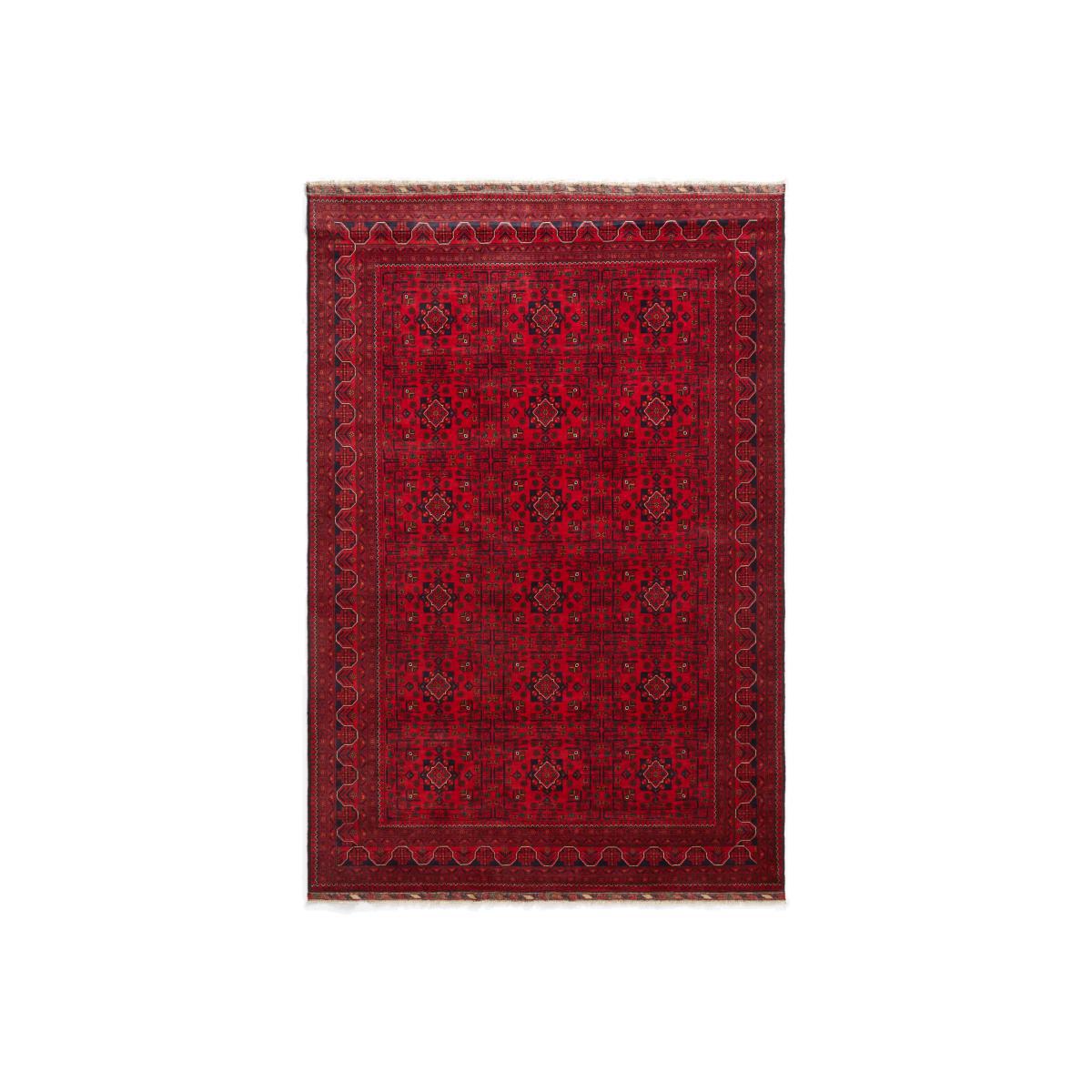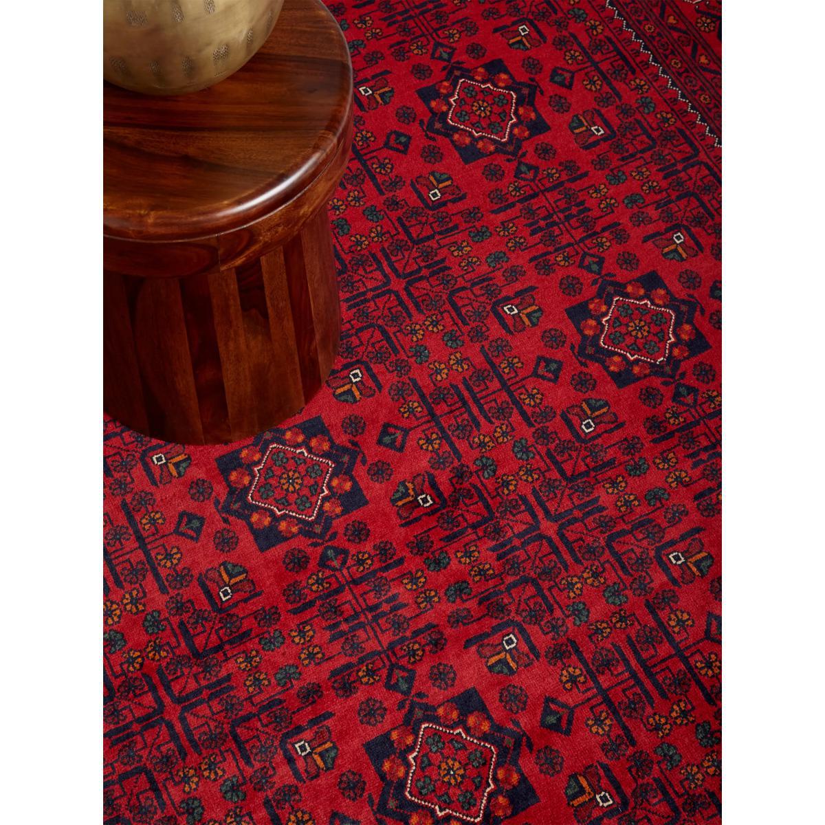 Truly traditional and artisan, the Kundos rug, sometimes known as Kunduz/Kamyabe, is woven in a town of Northern Afghanistan mainly by the Turkoman people. The Kundos quality is made uniquely famous due to the specific type of wool, dye and knots used. The wool used to make these rugs is sourced locally which gives a velvet soft feel on each piece and is very durable. The dying method carried out is also unique to this type of rug using a traditional method specific to the Andkhoy area. These unique methods delivers a very distinct and solid, bold colour. The rugs are then taken to a region in Pakistan where final bespoke touches are added to ensure the rug is finished to the highest standard. This rug has been finished at each end with an additional kelim flatweave decorative trim. In 1sqm of Kundos rugs there would be around 160000 + knots giving a very fine density. Worth Knowing: The exact design layout will differ depending on the size of rug you choose. About your new rug We recommend. It prevents your rug from moving underfoot and protects against colour transfer to the floor Natural fibres may shed. This will reduce over time, and shouldn't affect your rug's lifespan or performance When vacuuming your rug, use suction only. Rotating brushes may damage the fibres Blot any spills with a clean, dry cloth. Do not rub or use harsh detergents.
