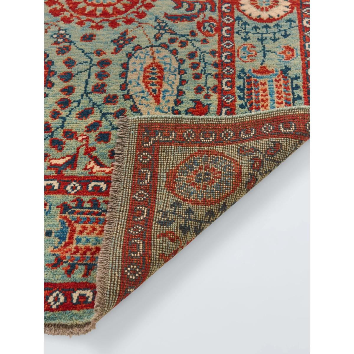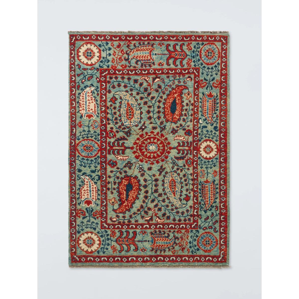 Beautifully intricate with swirling florals and motifs, the Suzani rug is inspired by centuries of traditional rug design. Accented with a classic border and tassels, it's made from 100% warming wool. This rug has been knotted by hand, the oldest and most individual way a rug can be made. This involves an intricate process of weaving by hand on a loom where yarns are tied one at a time, giving the rug a durable construction. The benefits of a wool rug Warm and durable, wool feels beautifully soft underfoot and is long-lasting Naturally flame-retardant and odour resistant Water repellent so easier to clean Naturally biodegradable, wool is part of the circular economy and contains no micro plastics About your new rug We recommend John Lewis & Partners Rug Hold Underlay. It prevents your rug from moving underfoot and protects against colour transfer to the floor As this rug is made using natural fibres, shedding is to be expected. This will reduce over time, and should not have an impact on the lifespan or performance of your rug. When you first get your rug, please use the brush attachment on your vacuum cleaner whilst the shedding dies down. After that, when vacuuming your rug, use suction only. Rotating brushes may damage the fibres. When vacuuming your rug, use suction only. Rotating brushes may damage the fibres Blot any spills with a clean, dry cloth. Do not rub or use harsh detergents. Attend to spillages immediately and blot with a clean, dry cloth to prevent staining. Dilute a small amount of appropriate carpet shampoo in water. Dampen a colourfast cloth in the diluted shampoo solution and dab the rug, lightly agitating, moving in the direction of the pile. Treat the whole rug and not just the affected area. To restore the appearance of the affected area, use a soft bristled brush to gently comb in the direction of the pile. Allow the rug to thoroughly dry.