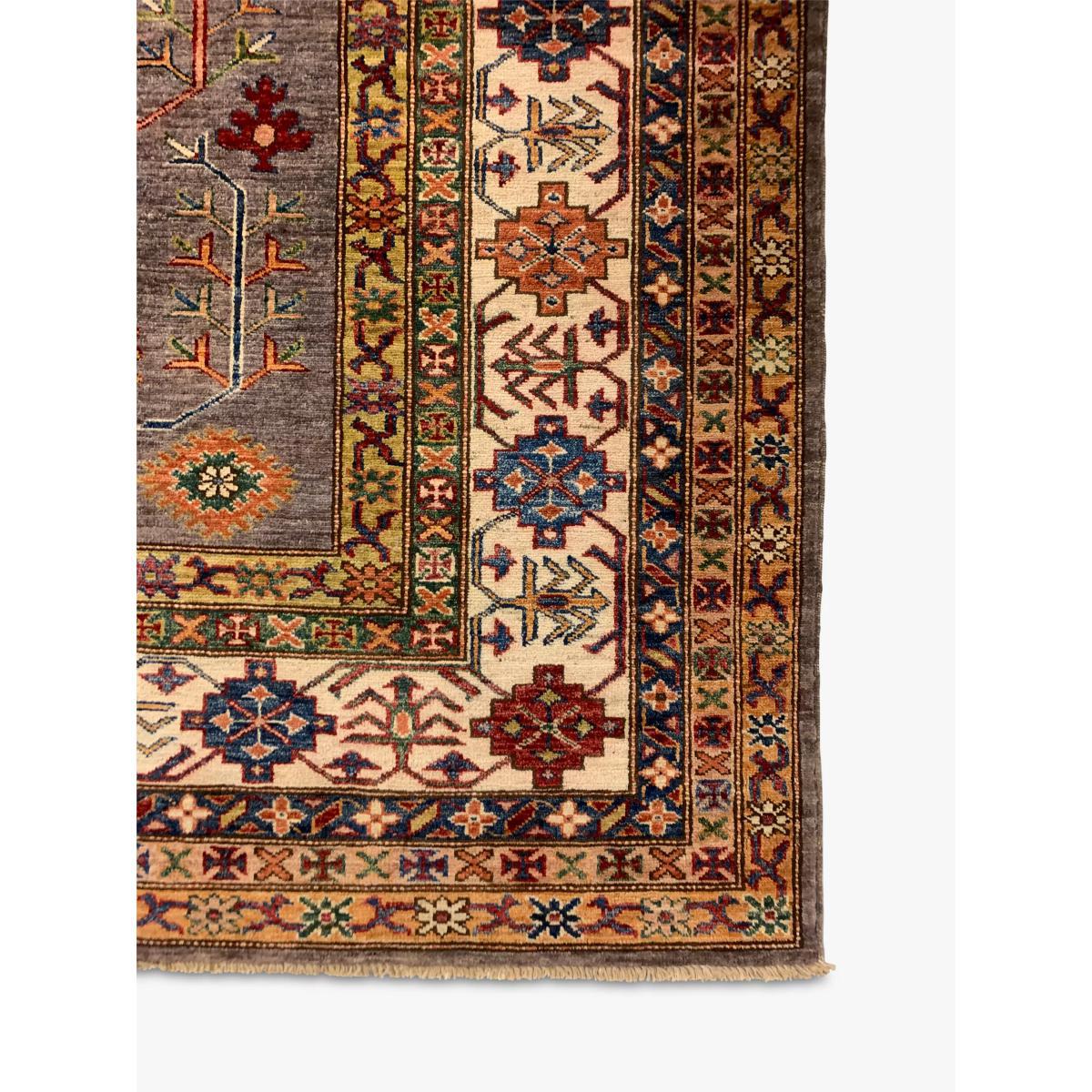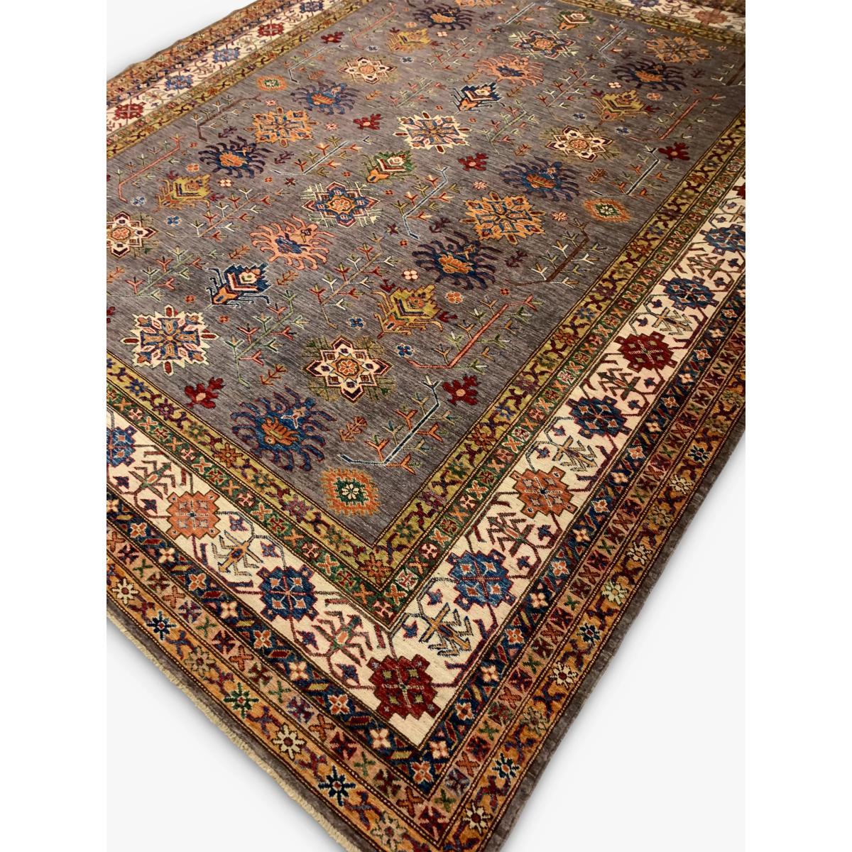 A selection of truly unique and totally individual traditional hand-knotted rugs, this range from Gooch Oriental showcases rugs created by different artisans across town and village locations across the world, including traditional Persian creations. Each piece is carefully selected by the Gooch Oriental team to ensure it's authenticity, quality and finish. Each one is knotted by hand, an intricate process using traditional hand knotting techniques. As such, no two pieces are the same, meaning you can add an authentic and unique piece of crafted design into your home, whilst supporting this heritage industry. The supreme Kazak design is mainly made by the Hazara Tribes of Afghanistan. The design and patterns of Kazak rugs are taken from old Caucasian rugs (Caucasian carpets are from the areas south, east and north of the mountain chain of the Caucasus, Russia). The wool yarns used are all hand spun and dyed using only natural dyes such as cochineal and indigo, which adds to their dramatic and vibrant appearance. Once dyed and hand knotted on a cotton warp base in Afghanistan the rugs are then transported over to Pakistan where they are expertly finished including washing and trimming. The method used to hand make a Kazak rug is called ‘ChappatBaft or Flat woven. Kazak rug weavers are faithful in using traditional bold colour and design mainly with geometrical motifs including a mixture of diamond and circle shapes as well as representations of animals, people and nature. In 1sqm of a Supreme Kazak rug there would be around 160000 + knots giving a fine-density pile. For more information on this rug, email info@goochoriental.com About your new rug We recommend John Lewis & Partners Rug Hold Underlay. It prevents your rug from moving underfoot and protects against colour transfer to the floor Natural fibres may shed. This will reduce over time, and shouldnt affect your rugs lifespan or performance When vacuuming your rug, use suction only. Rotating brushes may damage the fibres Blot any spills with a clean, dry cloth. Do not rub or use harsh detergents. Textile backed