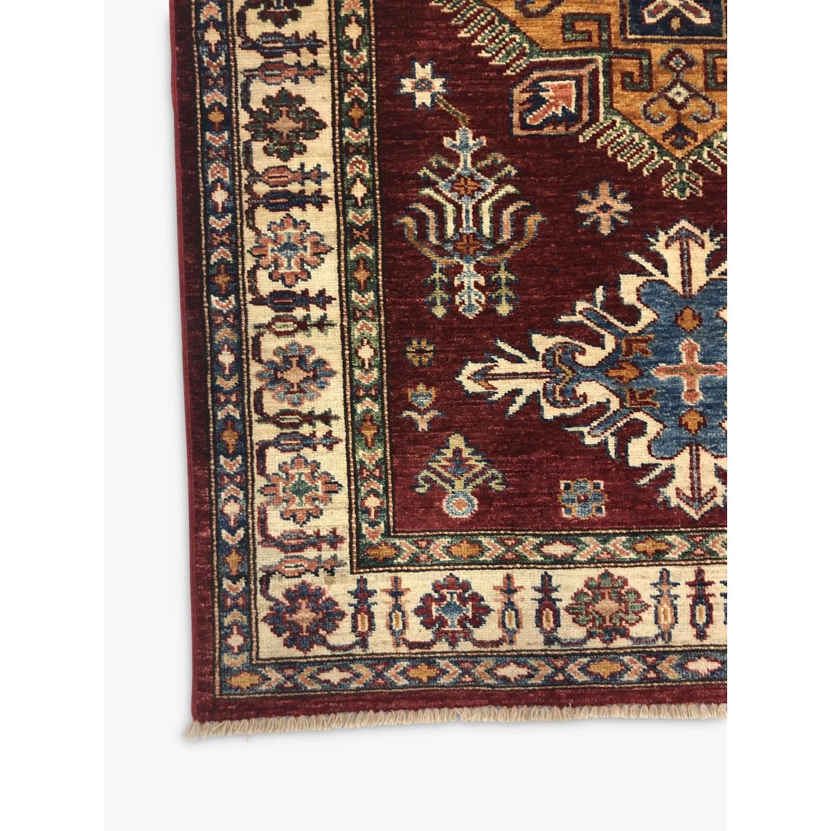 A selection of truly unique and totally individual traditional hand-knotted rugs, this range from Gooch Oriental showcases rugs created by different artisans across town and village locations across the world, including traditional Persian creations. Each piece is carefully selected by the Gooch Oriental team to ensure it's authenticity, quality and finish. Each one is knotted by hand, an intricate process using traditional hand knotting techniques. As such, no two pieces are the same, meaning you can add an authentic and unique piece of crafted design into your home, whilst supporting this heritage industry. The supreme Kazak design is mainly made by the Hazara Tribes of Afghanistan. The design and patterns of Kazak rugs are taken from old Caucasian rugs (Caucasian carpets are from the areas south, east and north of the mountain chain of the Caucasus, Russia). The wool yarns used are all hand spun and dyed using only natural dyes such as cochineal and indigo, which adds to their dramatic and vibrant appearance. Once dyed and hand knotted on a cotton warp base in Afghanistan the rugs are then transported over to Pakistan where they are expertly finished including washing and trimming. The method used to hand make a Kazak rug is called ‘ChappatBaft or Flat woven. Kazak rug weavers are faithful in using traditional bold colour and design mainly with geometrical motifs including a mixture of diamond and circle shapes as well as representations of animals, people and nature. In 1sqm of a Supreme Kazak rug there would be around 160000 + knots giving a fine-density pile. For more information on this rug, email info@goochoriental.com About your new rug We recommend John Lewis & Partners Rug Hold Underlay. It prevents your rug from moving underfoot and protects against colour transfer to the floor Natural fibres may shed. This will reduce over time, and shouldnt affect your rugs lifespan or performance When vacuuming your rug, use suction only. Rotating brushes may damage the fibres Blot any spills with a clean, dry cloth. Do not rub or use harsh detergents. Textile backed
